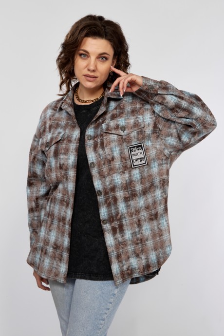 Рубашка Ольга Стиль С897 голубой, коричневый с ID товара 415069