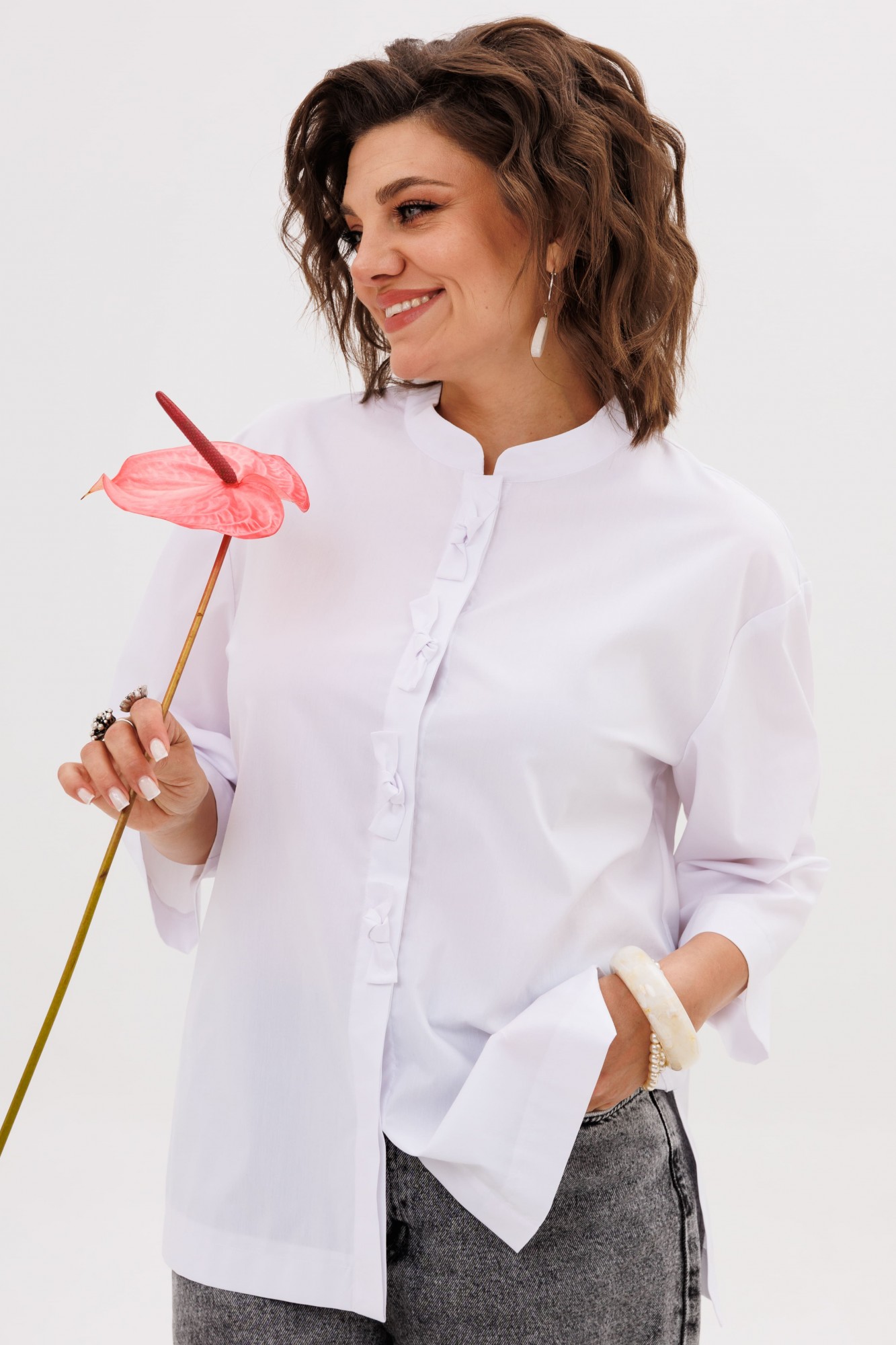 Эта блуза — больше, чем просто предмет гардероба. Это высказывание. Она способна преобразить самый сдержанный лук, наполнив его смыслом, светом и безупречным вкусом. Она станет вашим тайным оружием, источником спокойной уверенности и неоспоримой привлекательности.