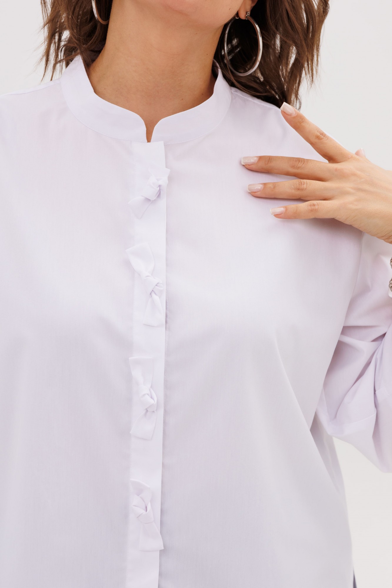 Финальный штрих, превращающий вещь в настоящее искусство, — это воздушные бантики. Они, словно бабочки, присели отдохнуть на белоснежном поле, символизируя легкость, изящество и любовь к прекрасным деталям.