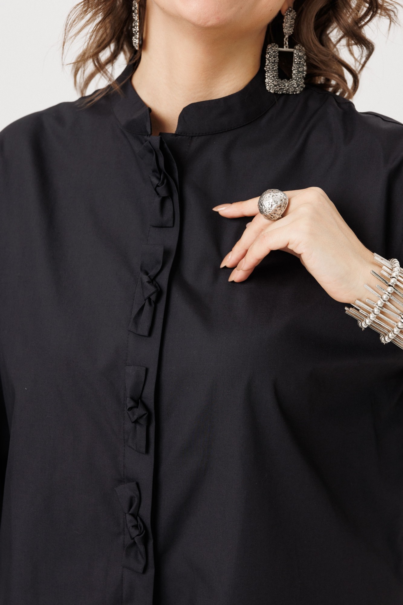 Коллекция азиатских мотивов в современном прочтении. Эта блуза от Анелли— воплощение изысканной простоты и тонкой эстетики, где каждая деталь выверена и несет в себе глубокий смысл. Прямой силуэт, ниспадающий мягкими складками, обладает умиротворяющей гармонией и скрывает все лишнее, создавая идеальный контур. Выразительным акцентом служит элегантная стойка, подчеркивающая линию шеи и придающая образу собранность и утонченность. Спущенная линия плеча смягчает образ, добавляя ему непринужденной элегантности и художественного шарма. Лаконичный рукав три четверти открывает самое изящное место на запястье, делая жест более выразительным и грациозным. Неброская потайная застежка обеспечивает безупречно чистую линию полотна, сохраняя целостность замысла. А по бокам расположены деликатные разрезы, которые открываются при движении, позволяя ткани красиво колыхаться и добавляя динамики вашему шагу. Финальный штрих, превращающий вещь в настоящее искусство, — это воздушные бантики. Эта блуза — больше, чем просто предмет гардероба. Это высказывание. Она способна преобразить самый сдержанный лук, наполнив его смыслом, светом и безупречным вкусом. Она станет вашим тайным оружием, источником спокойной уверенности и неоспоримой привлекательности.