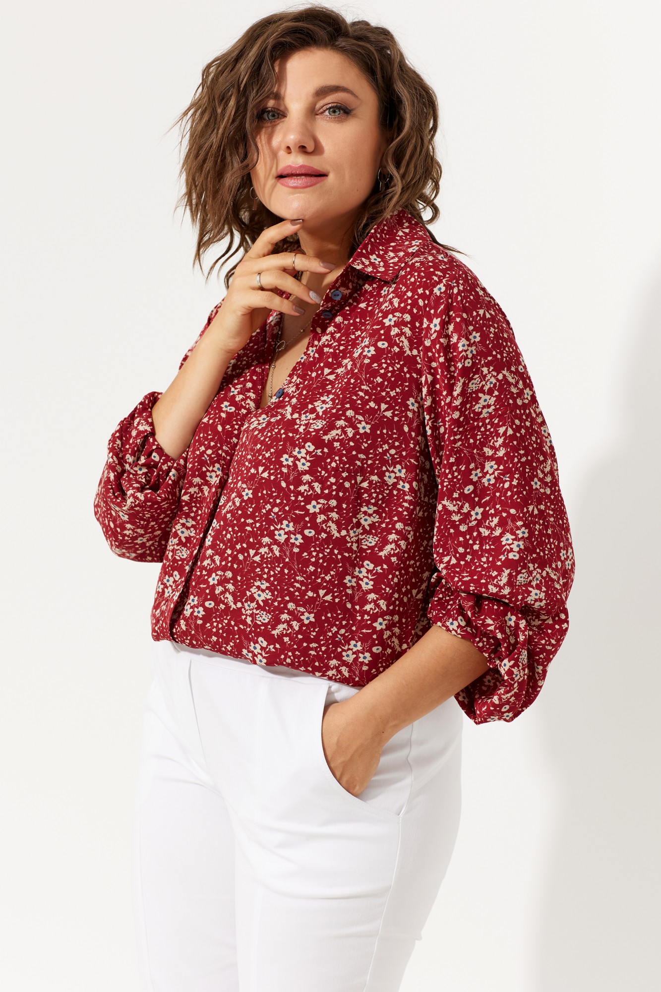 Рубашка BegiModa 4104 бордовый, принт цветы