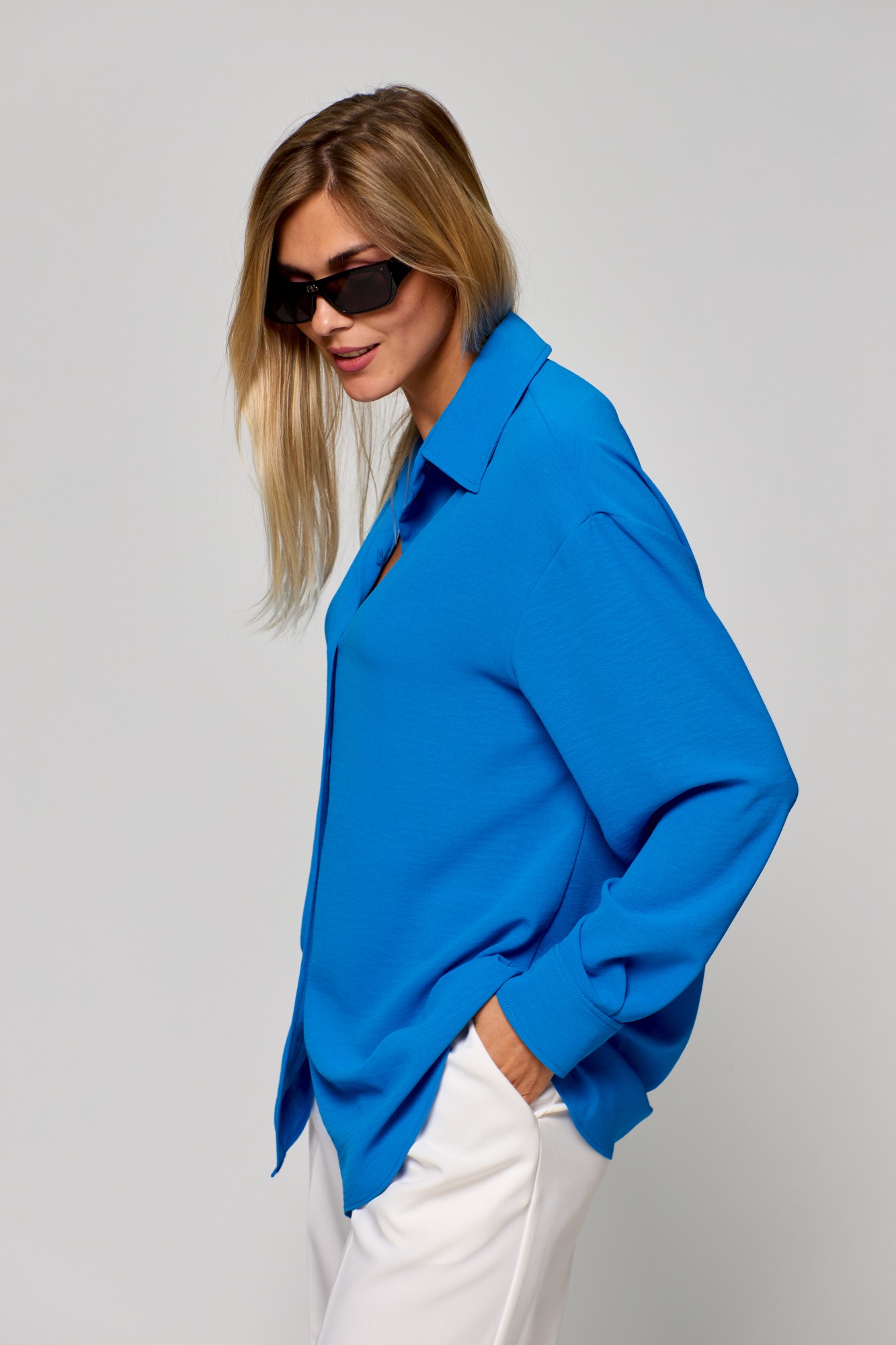 Рубашка свободного кроя, воротник-стойка, по переду отстроченная планка с застежкой на петли-пуговицы. Яркая акцентная рубашка станет вашим помощником в повседневных образах, отлично подойдут белые брюки из нашего ассортимента арт.2311 или джинсы, брюки арт 2296 дополнят комплект в одной цветовой гамме.