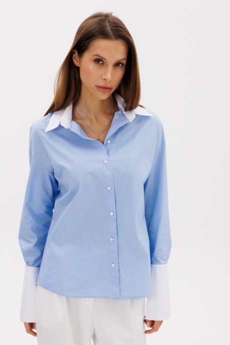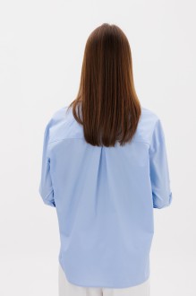 Рубашка свободного кроя. Рукав рубашечный, линия плеча спущена, рукав с притачной, отложной манжетой. Застёжка центральная на петли - пуговицы. Низ блузки фигурной формы. Воротник стояче-отложной с отрезной стойкой. Рубашка - база в гардеробе, сочетать можно с атласными брюками, юбками из кожи, трикотажными изделиями..