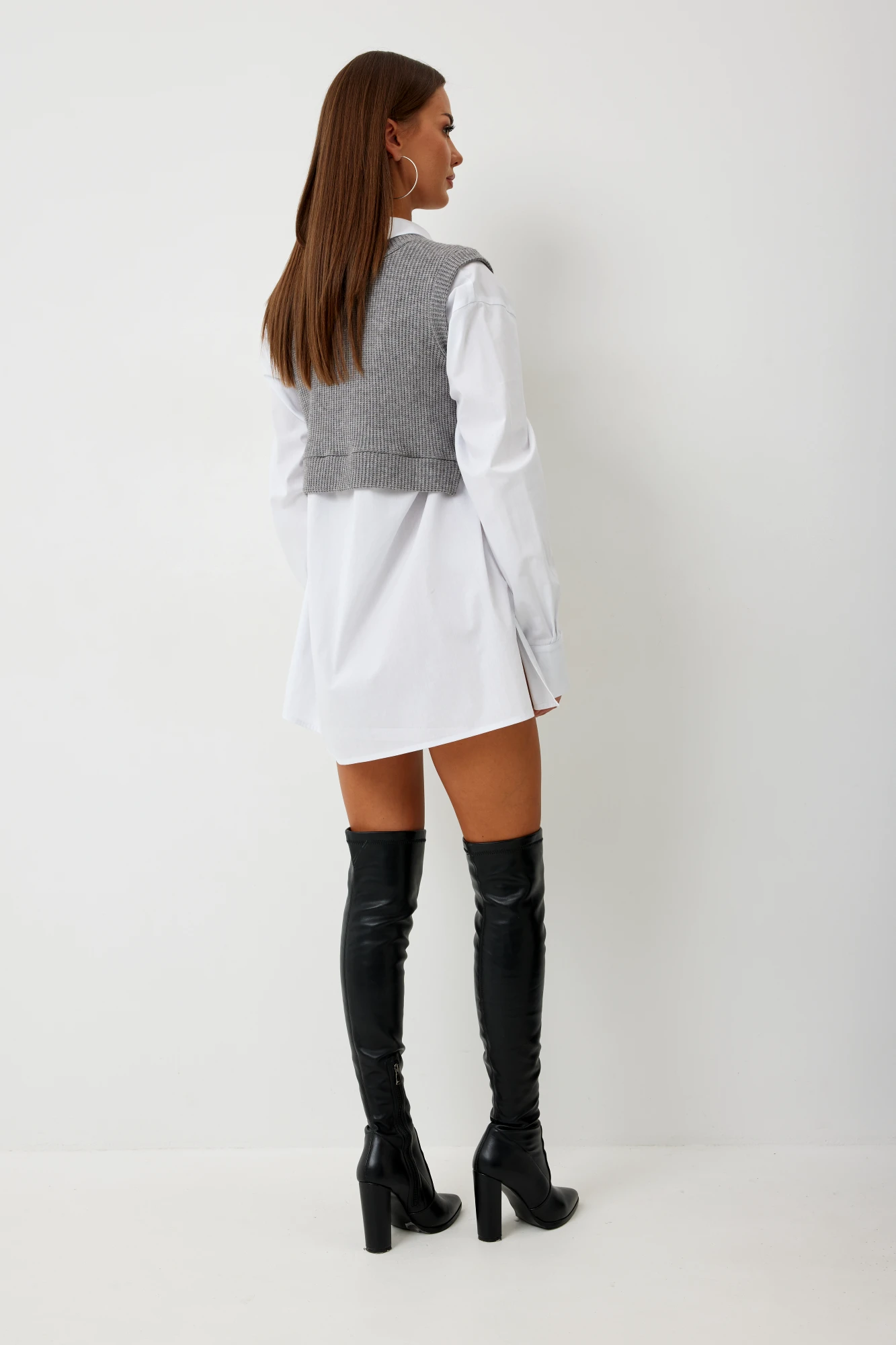 жилет: вязка -50% вискоза, 25% полиэстер, 25% нейлон рубашка: 65% хлопок, 32% вискоза, 3% спандекс