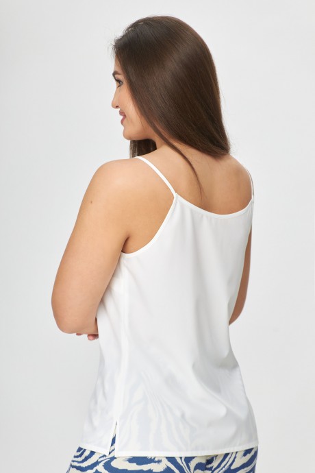 Этот топ выполнен из эластичной блузочной ткани, которая легко дышит и охлаждает, что делает его комфортным для жаркой погоды. Срезы горловины и проймы мягко окантованы, что придает топу нежный вид и обеспечивает дополнительный комфорт.