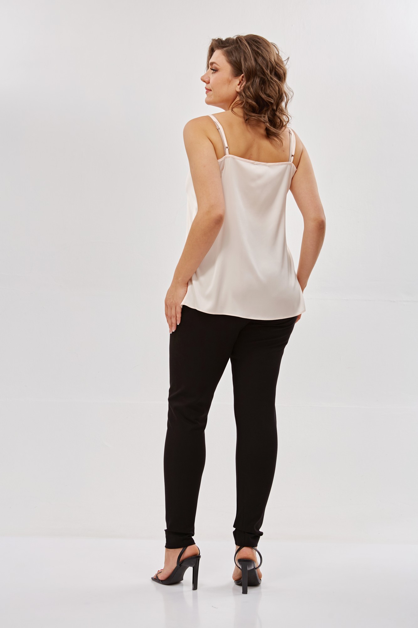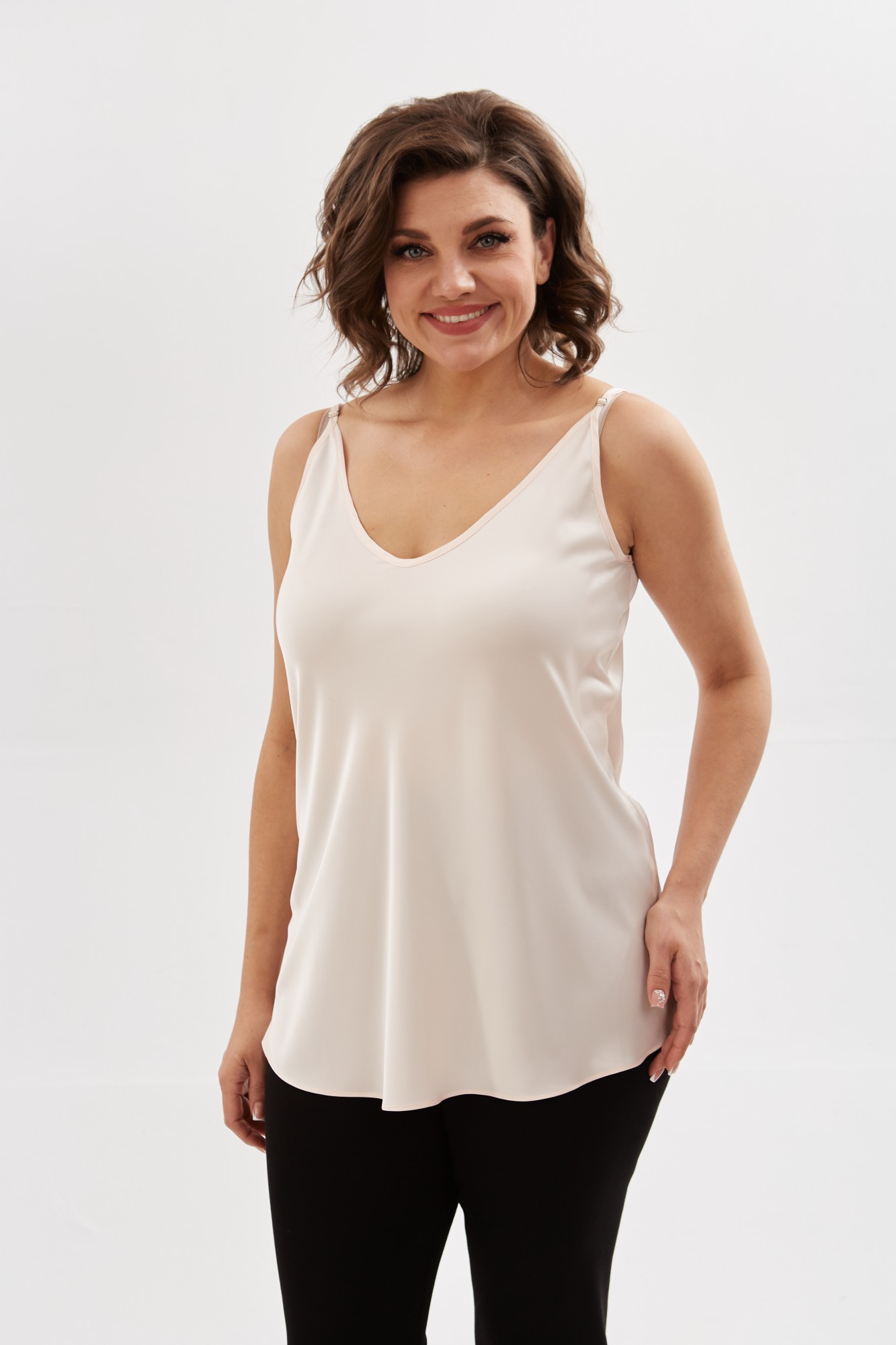 Топ на бретелях полуприлегающего силуэта. Перед покроен по косой. Бретели регулируются.