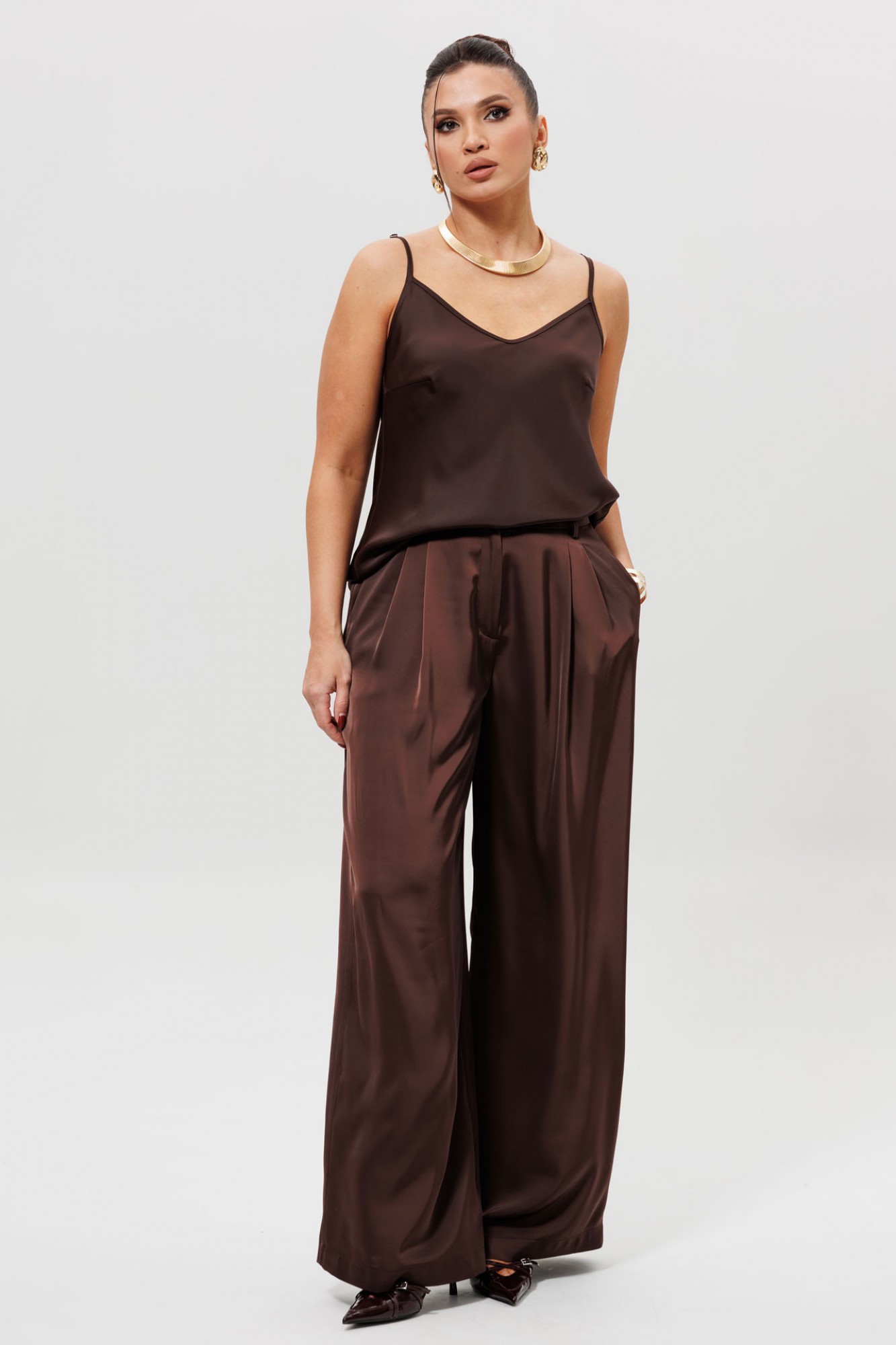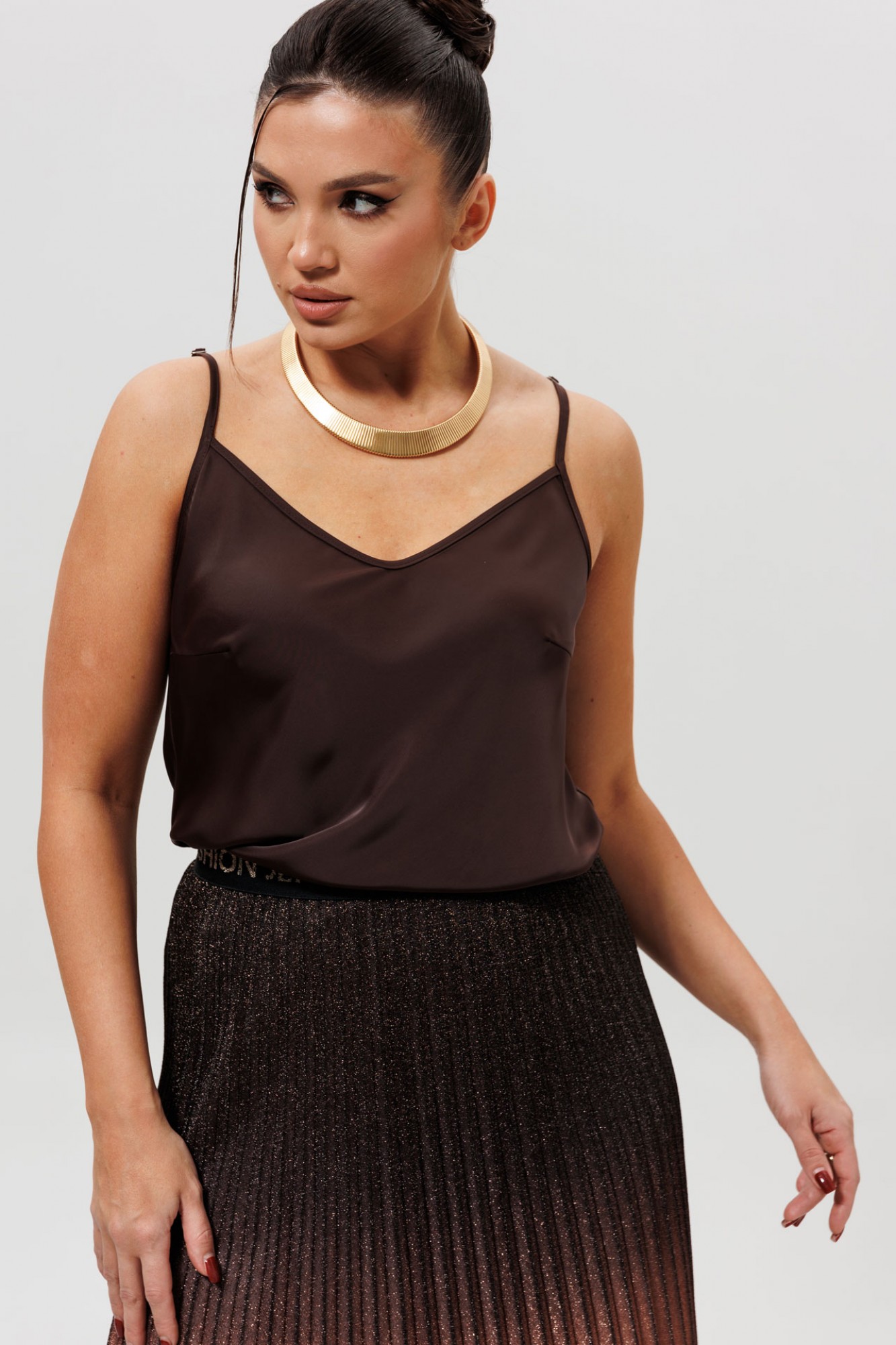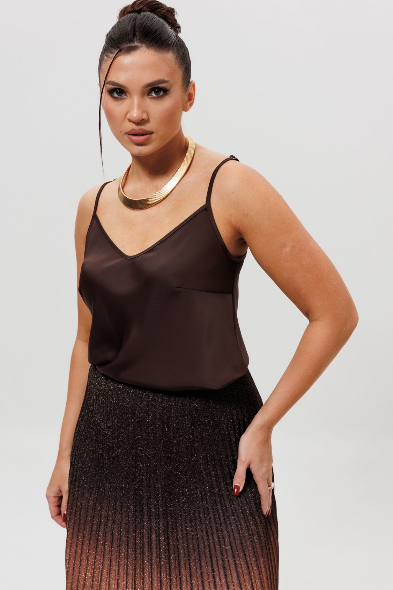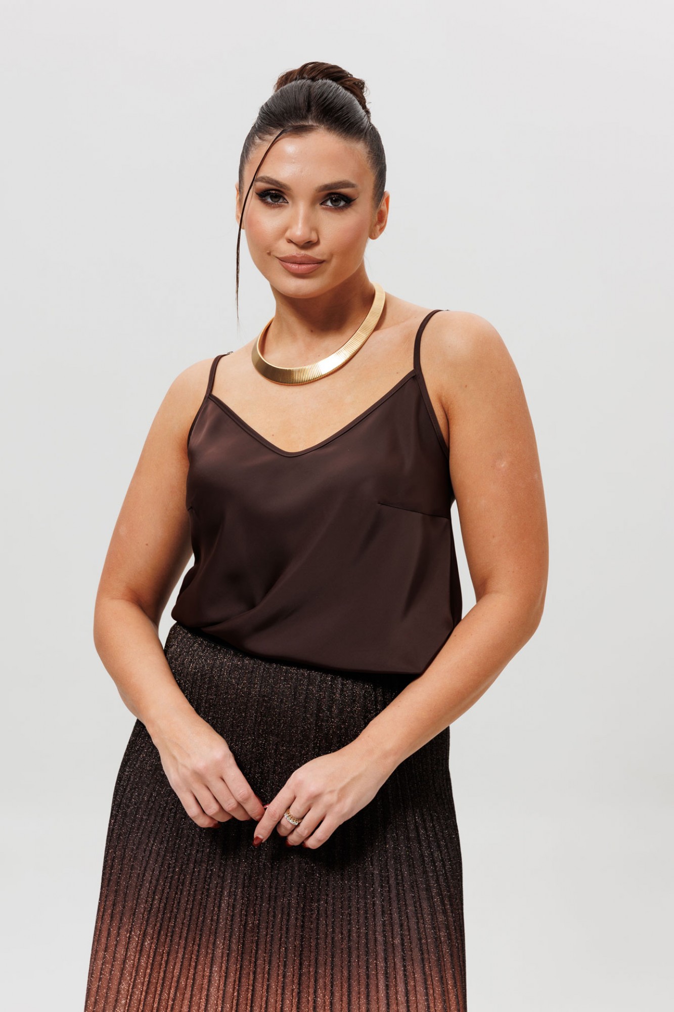 Топ выполнен из атласной ткани. Изделие прямого силуэта с нагрудными вытачками. Перед фигурный, обработан окантовкой, так же, как и низ изделия. Бретели регулируются. Этот базовый топ (Арт. 1164) — фундаментальная вещь в вашем гардеробе. Доступный в трех насыщенных цветах (красный, черный, шоколадный), он станет идеальной основой для сложных многослойных образов. Топ выполнен из комфортной ткани, которая хорошо сочетается с кружевными и бархатными вещами. Его можно носить с юбкой 1281, под кружевными жакетами или с кейпами из нашей коллекции. Универсальный топ подчеркивает фигуру и обеспечивает комфорт в течение всего дня.