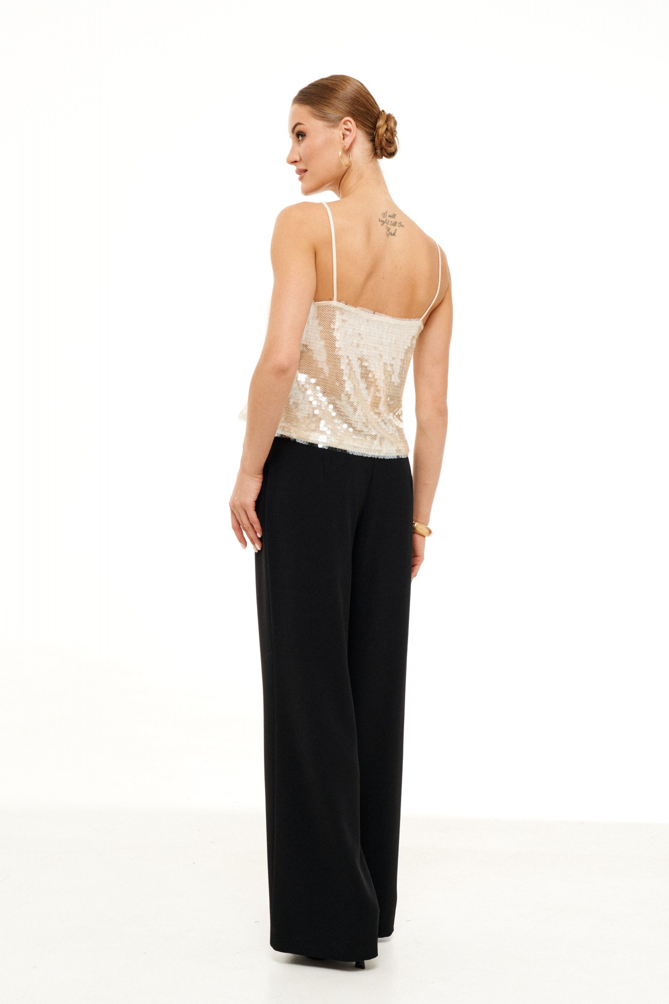 Топ из пайеток полуприлегающего силуэта на подкладке. Бретели не регулируются.