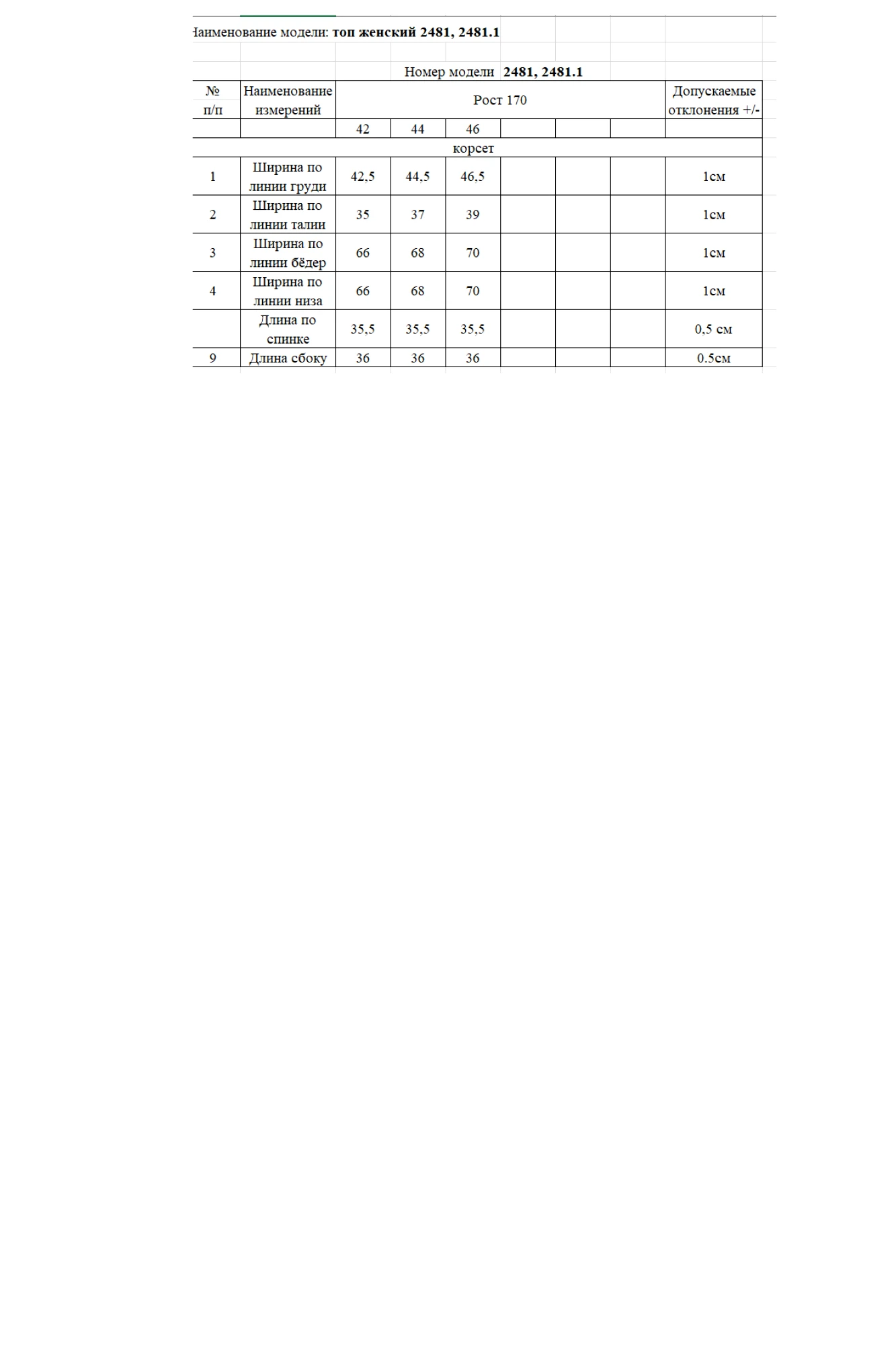 Таблица размеров