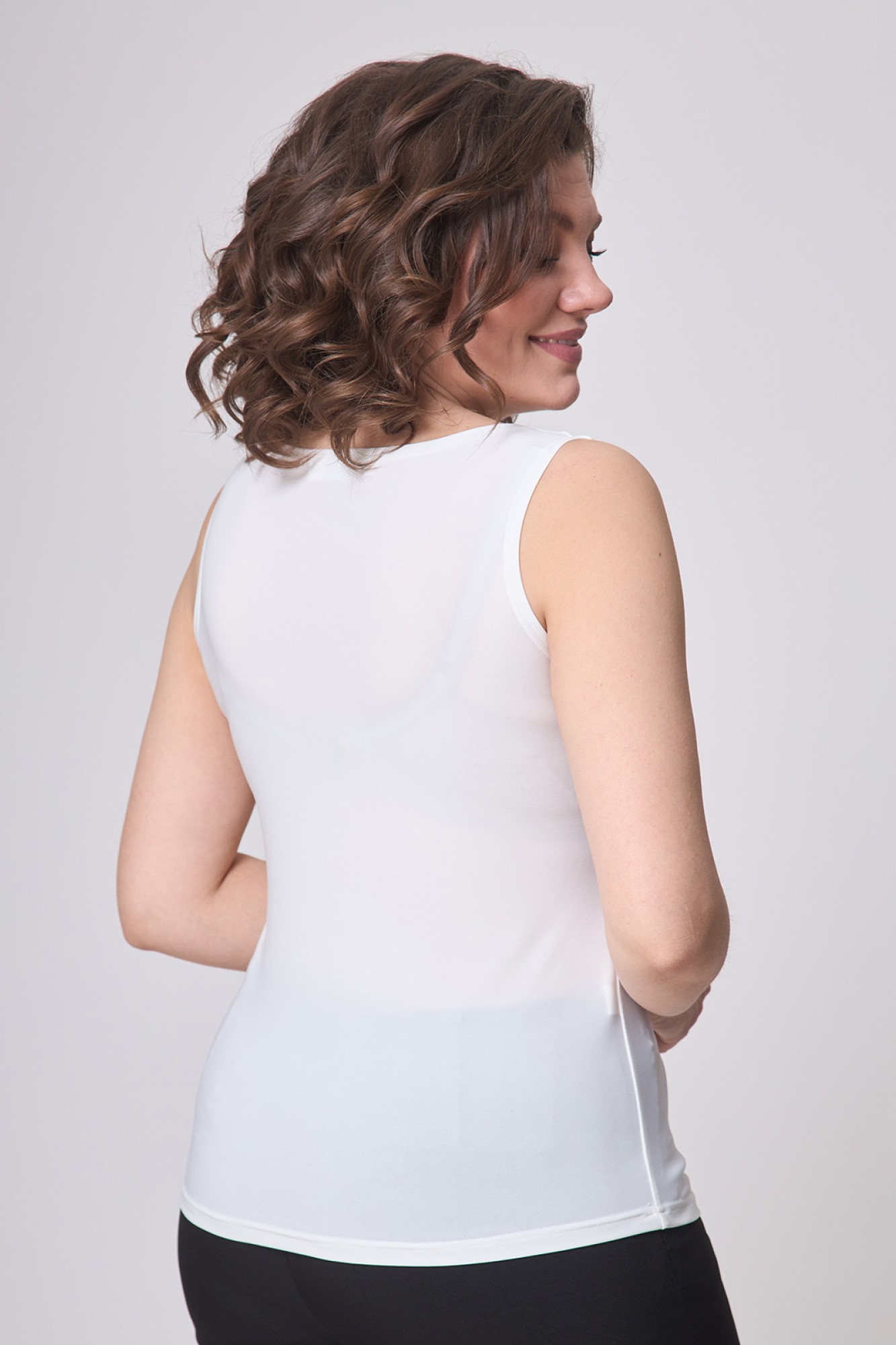 Трикотажная женская майка (топ) однотонного цвета, приталенная, классическая. Хорошо держит свою первичную форму и имеет высокую эластичность. Вырез горловины круглый. Данную модель можно использовать в качестве спортивной майки для фитнеса, для бега, для йоги. Женская элегантная майка, необходимая и универсальная вещь, в каждом гардеробе. Она превосходно сочетается с одеждой любого стиля. Облегающий крой обеспечит идеальную посадку и комфорт.