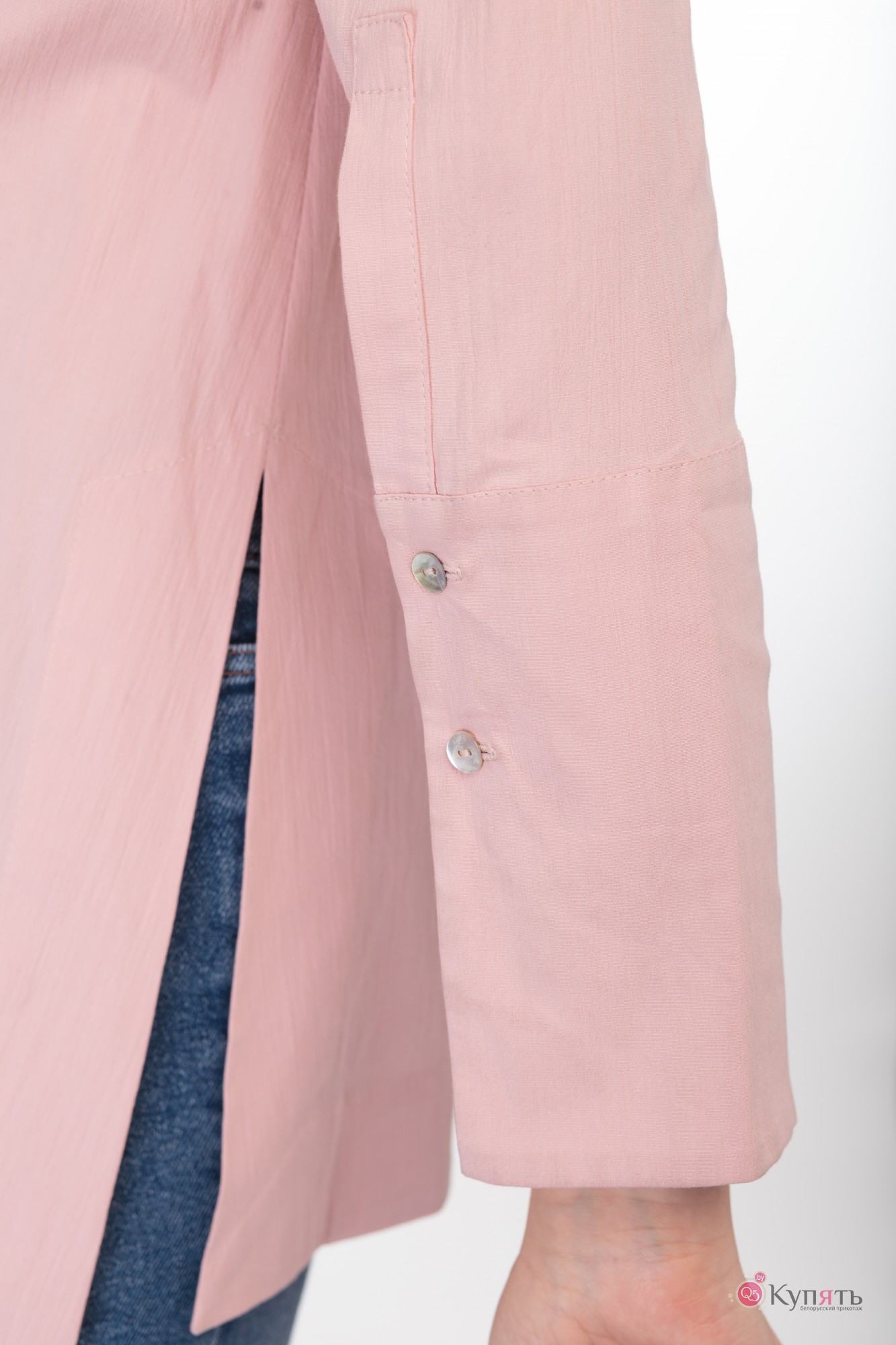 Туника свободного кроя с продуманными конструкторскими деталями: ассиметричный низ с высокими разрезами, втачной рукав с широкой манжетой и функциональной застежкой на пуговицы. Застежка по центру спинки вверху на пуговицы. Округлый вырез горловины.