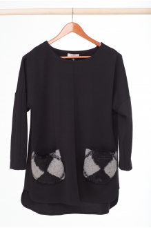 Туника-блузон женская с меховыми карманчиками черных тонов.