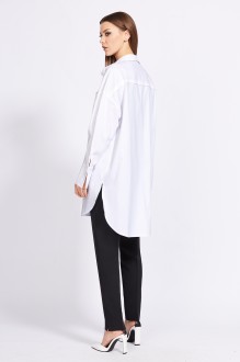 Блузка выполнена из блузочной ткани. Блузка прямого силуэта, длиной выше линии колена. Застежка спереди на пуговицы. На спинке кокетка. Воротник стояче-отложной с отрезной стойкой. Плечевой шов спущен. Рукав рубашечного покроя, одношовный. Низ рукава на манжете, застегивающейся на пуговицу. Низ блузки фигурной формы, с разрезами в боковых швах.