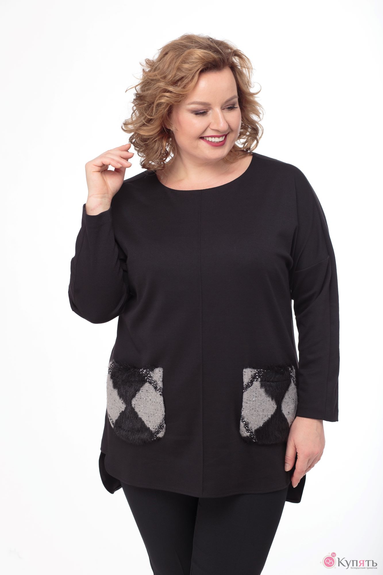 Туника-блузон женская с меховыми карманчиками черных тонов.