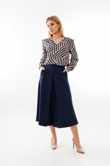 Юбка-брюки А-силуэта, с застёжкой на потайную тесьму молнию с притачным поясом и карманами спереди. По переду встречная складка