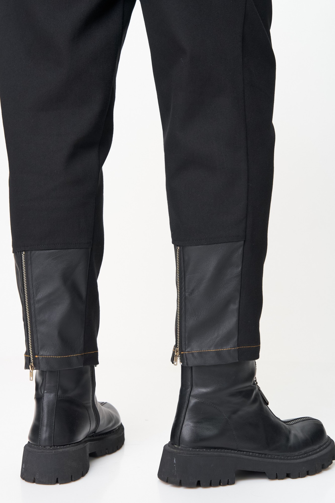 Джинсы мом с высокой посадкой - это идеальный выбор для женщин, ищущих комфорт и стиль в повседневной жизни, на работе. Брюки изготовлены из высококачественного смесового хлопка, обеспечивают идеальный баланс между удобством и прочностью. Модель с высокой посадкой, сзади с накладными карманами с отделкой и боковыми наклонными спереди. Вставки из экокожи с молниями по задним половинкам брюк внизу придают функциональности. Брюки на притачном поясе частично с резинкой.