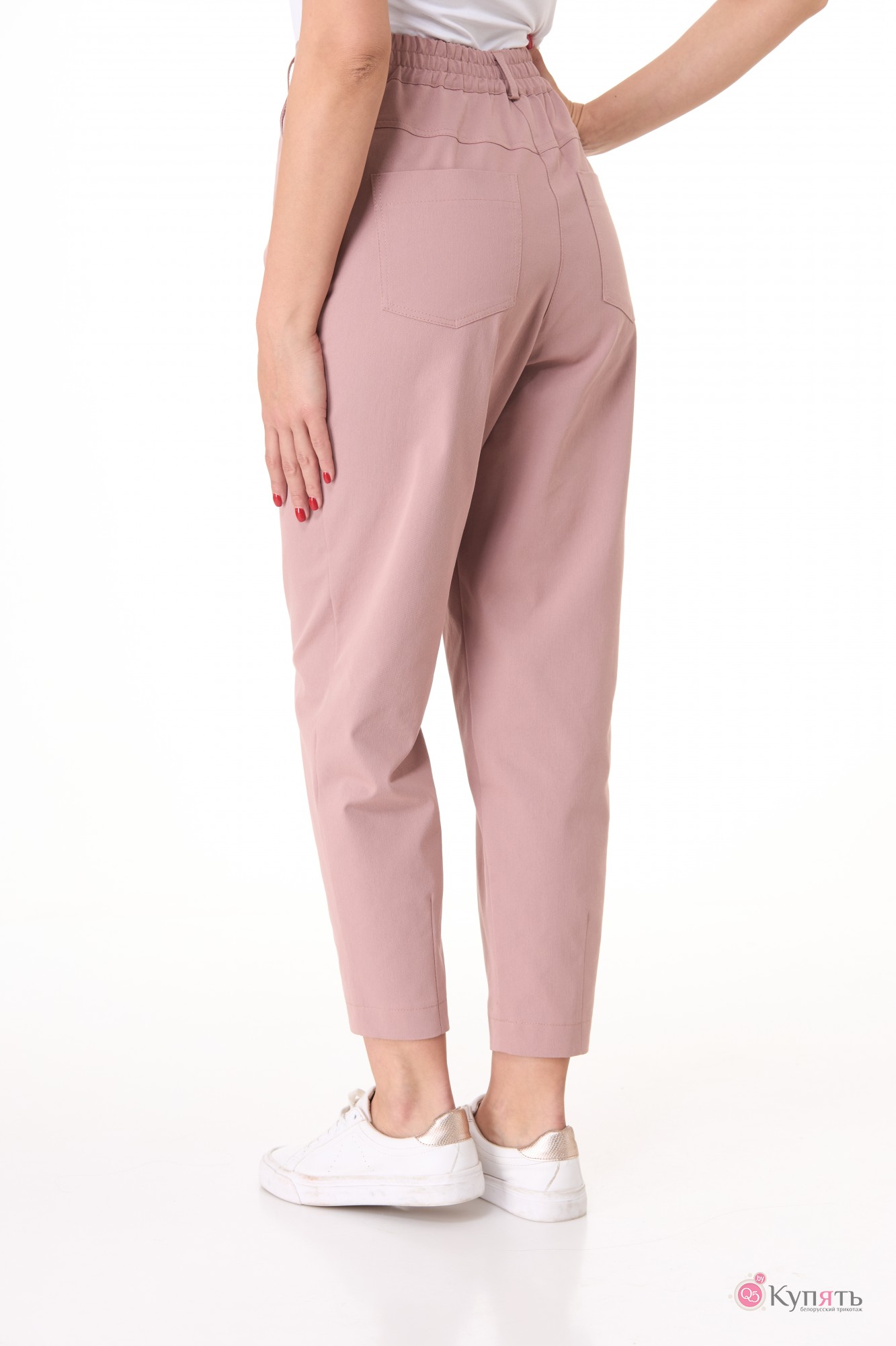 Зауженные книзу за счёт вытачек по передним и задним частям. На передних частях брюк обработаны карманы с отрезным бочком.