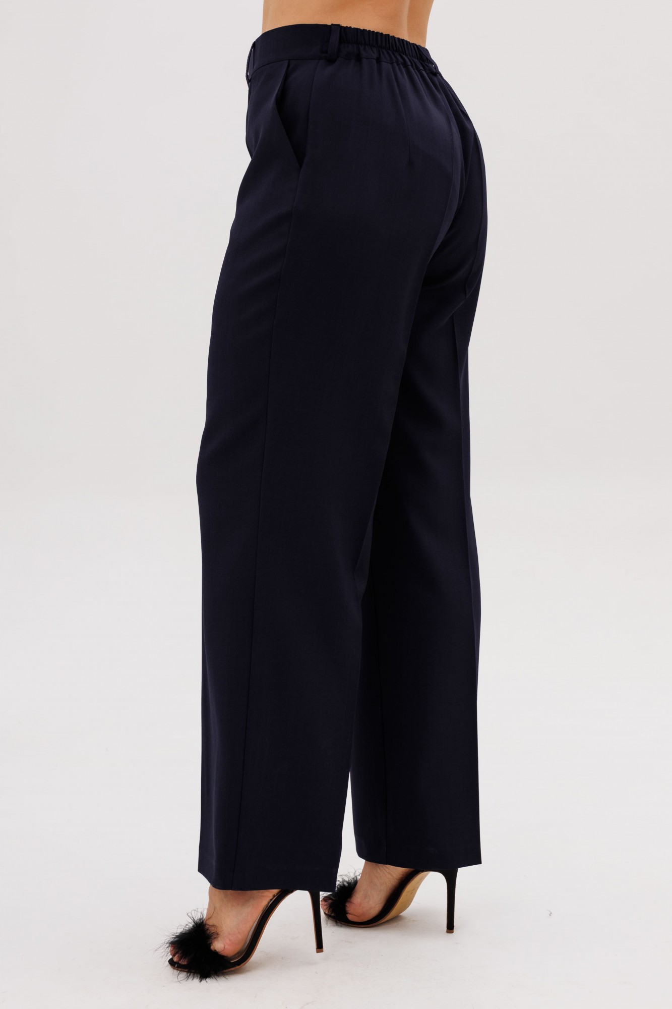 Эти классические брюки созданы для тех, кто ценит безупречный крой и комфорт. Высокая посадка деликатно поддерживает фигуру, а прямой крой со стрелками визуально вытягивает силуэт, делая его стройнее. Модель брюк универсальная, подойдёт также и обладательницам пышных бедер.
