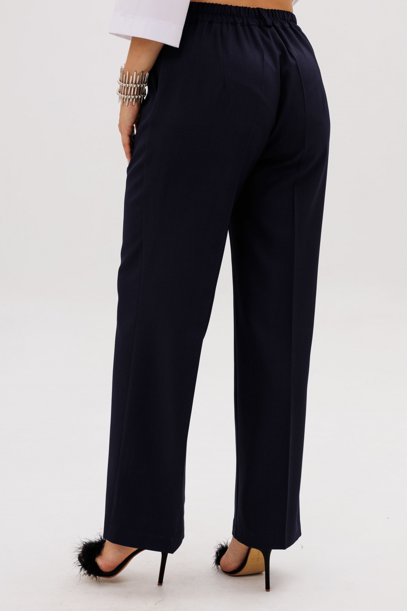 На модели в брюках цвета «миднайт блу» белая блуза 1669 и синяя блуза 1710.