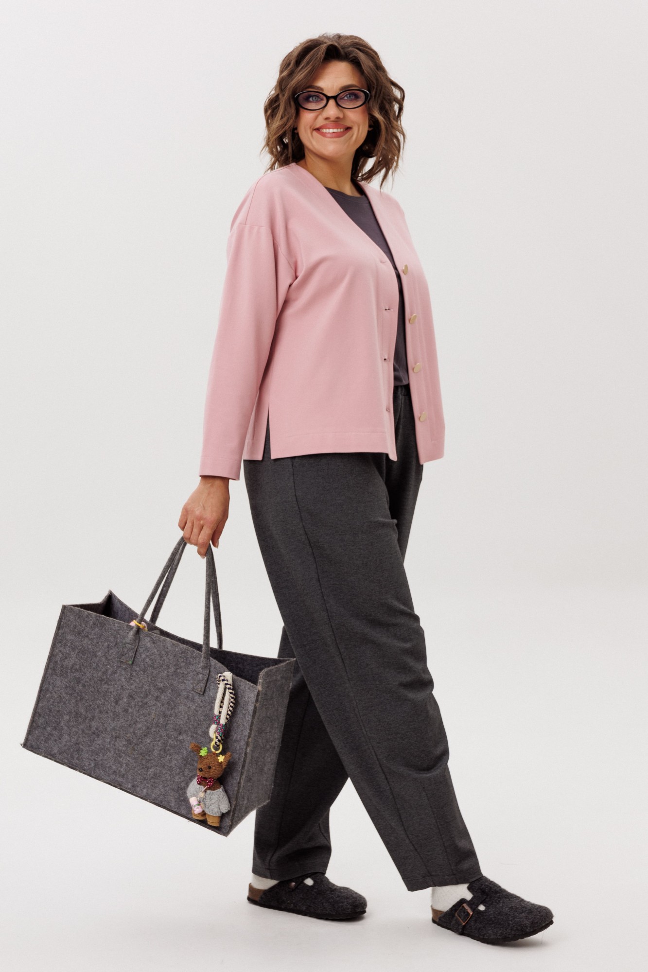 Погрузитесь в ощущение безмятежного комфорта, воплощенного в каждой линии этих брюк от Анелли. Идея повседневной элегантности обретает здесь свою совершенную форму — мягкий трикотаж, струящийся свободным кроем, нежно обволакивает фигуру, даря ей полную раскрепощенность. Высокая посадка становится основой безупречного силуэта, плавно ведущего взгляд от тонко подчеркнутой талии к изящному заужению книзу, созданному изящной вытачкой для идеальной посадки по ноге. Притачной пояс завершает эту гармонию линий, обеспечивая комфорт, который не приходится проверять, а боковые карманы добавляют практичной лаконичности. Это — тот самый крой, который вы ждали, он становится откровением, превращая простой предмет гардероба в кульминацию ожиданий о единстве стиля и уюта. Универсальные и выразительные, эти брюки рождают состояние спокойной уверенности, сопровождая вас сквозь череду городских событий, где каждое движение наполнено грацией, а каждый повод становится поводом почувствовать себя безупречно. На модели в брюках цвета "дымчатый туз" собран лук с пушистым жакетом 1661, розовым жакетом 1661.1 и жакетом 1778.