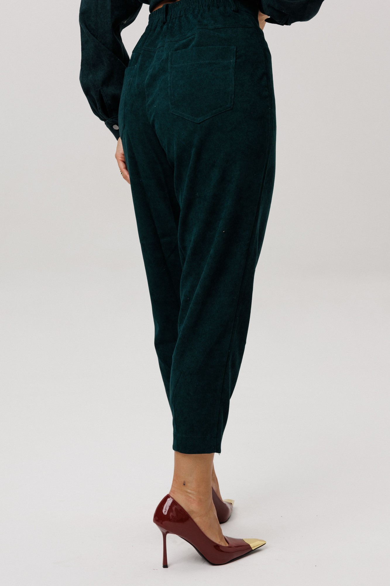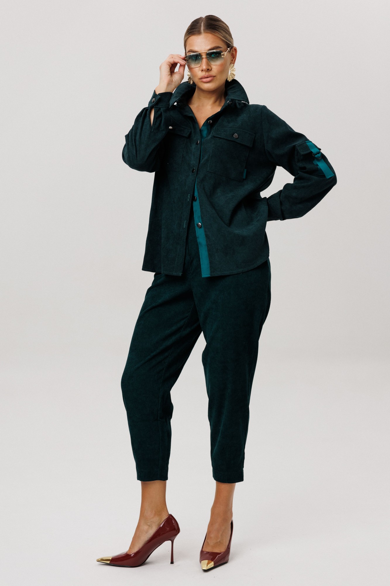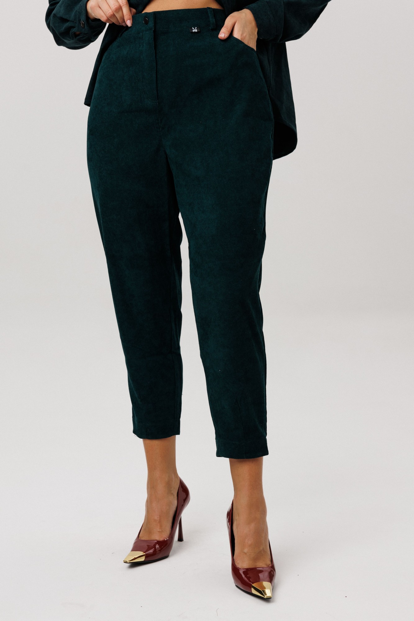 Эти брюки заужены к низу, что позволяет носить их с любым видом обуви. Также вы можете носить брюки костюмом — с рубашкой 1746 от Анелли в цвете «зеленый корд», как представлено на модели.