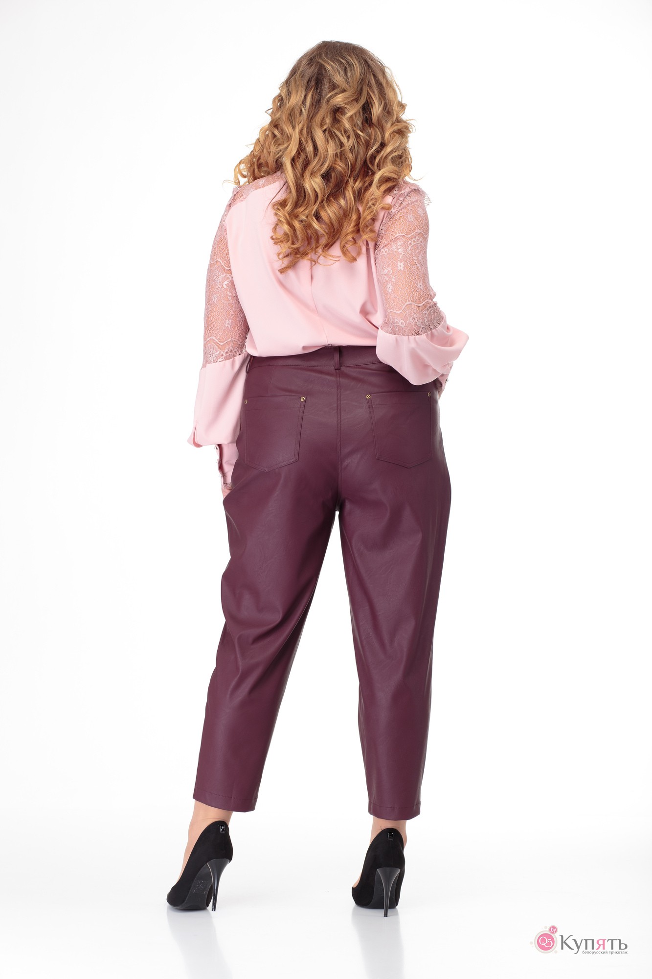 При съемке для образа использован лонгслив Anelli Style – 897 белого цвета; при съемке брюк 903 цвет вишня – использованы блузы 845 пудровых тонов и белая; при съемке брюк 903 цвет коричневый – использованы блуза 845 черного цвета.