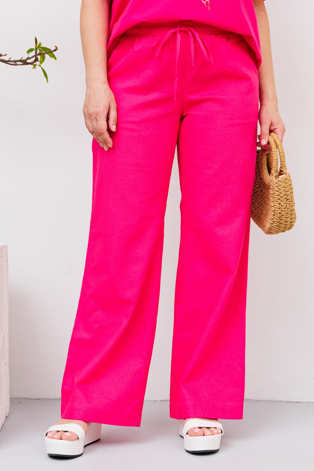 Льняные брюки свободного кроя. Пояс на резинке, для удобства в носке в пояс вставлен шнурок для регулирования объёма по талии. Посадка брюк - высокая. По переду расположены карманы с наклонным входом. По низу широкая подгибка для возможности коррекции по длине. Брюки с хорошей посадкой, в этом заключается их секрет универсальности и возможности носить их девушкам с любым типом фигуры. Идеальные брюки для летней жары, в них ваша кожа будет дышать. Они выполнены из мягкого льна с вискозой. Отличный вариант, как для городского лета, так и отдыха на море. Лен хорошо поглощает влагу, не вызывает аллергии, обладает высокой степенью воздухопроницаемости. Льняные брюки имеют большой срок службы, сохраняют первоначальный внешний вид даже после множества стирок. Они не растягивается, не садятся после стирки. Ткань не просвечивается, и не катается после носки.