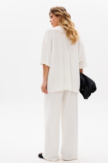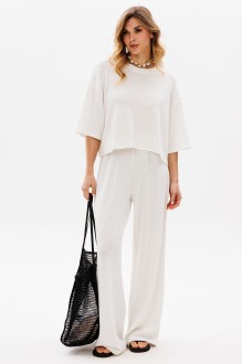 Брюки выполнены из трикотажного полотна. Брюки прямые, длиной в пол. Брюки на цельнокроеном поясе с эластичной тесьмой.