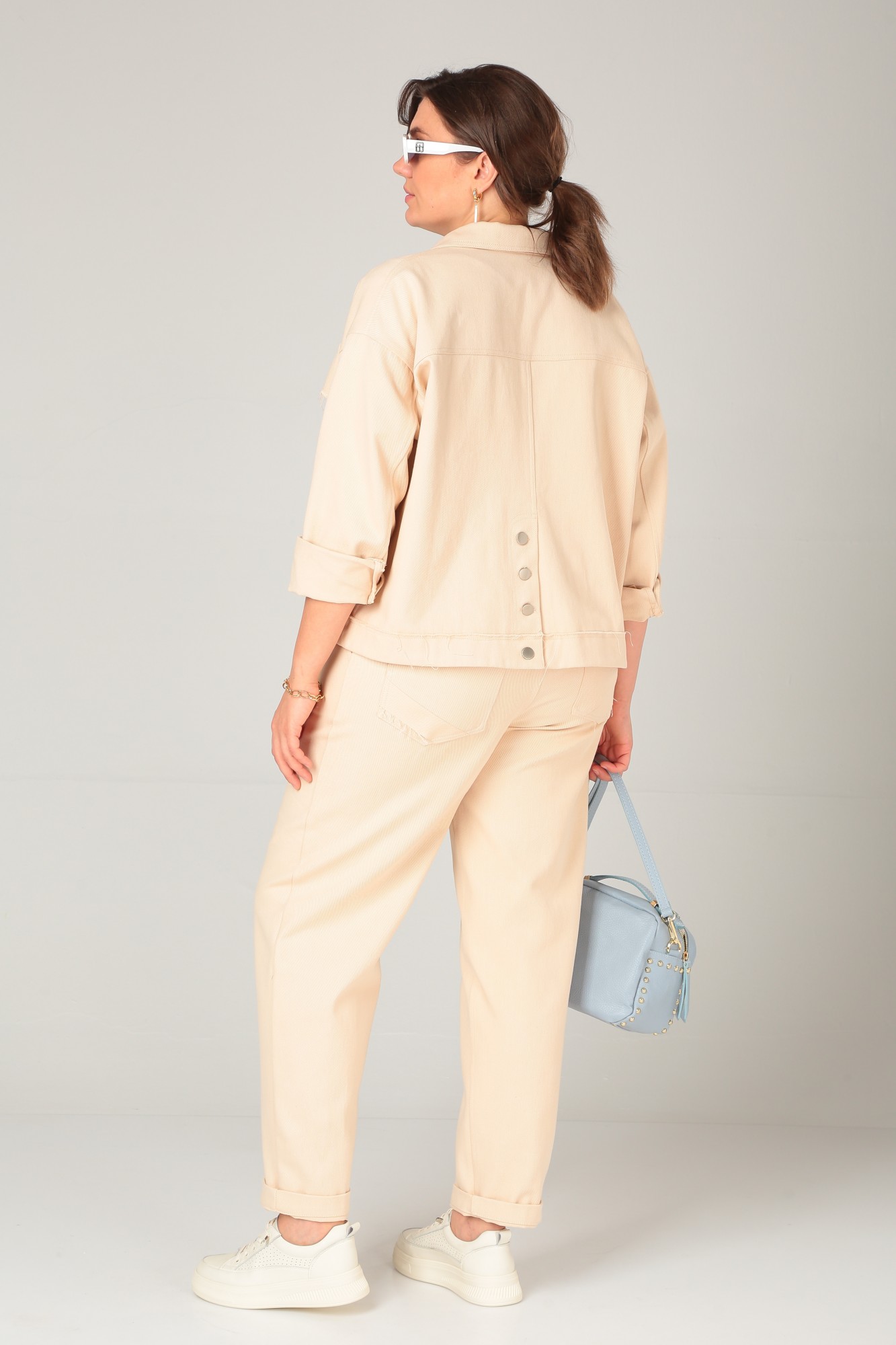 Брюки из плотной ткани джинс прекрасно впишутся в гардероб каждой покупательницы. Модель на поясе с застежкой молнией и на 2 пуговицы. Пояс по спинке на резинке , что добавит комфорт и удобство. По правой половинке джинс отрезная отделочная деталь, отстроченная двумя отделочными строчками. По спинке фигурные карманы необычной формы, также с отделочной деталью. Брючки прямого силуэта. По переду глубокие карманы, вход в которые отстрочен отделочными строчками.