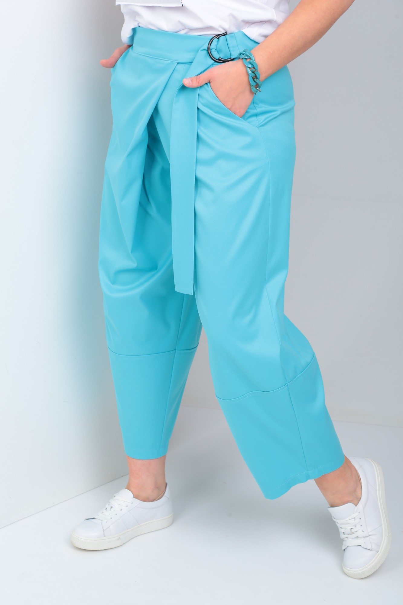 Лето уже наступает нам на пятки! Поэтому пора обновить летний гардероб! Одним из идеальных вариантов будут брюки от GRATTO, в которых Вы будете чувствовать себя комфортно даже в самую жаркую погоду. Это модель брюк-баллонов свободной формы с притачным поясом. Оригинальный фасон таких женских летних брюк подойдет многим. И все потому, что эти брюки фиксируются на талии на резинке, штанины внизу заужены. Один свободный конец пояса застегивается на два металлических кольца. Внутри, застежка на петли и молнию. Конфигурация деталей позволяет сформировать на передней части запахивающуюся складку. Кроме того, такой элемент выглядят очень современно и модно. В боковых швах подрезные карманы, округлой формы. По низу брюк проложены декоративные горизонтальные швы. Большой плюс такой модели – это их возможность сочетать с различными элементами гардероба. Такие брюки будут выглядеть гармонично как с блузами так и с футболками. Это делает их универсальными и практичными. Если Вы хотите добавить в свой летний гардероб модные и необычные брюки – это отличный выбор. Большие размеры также не являются проблемой – наоборот, модель выглядят очень эффектно и привлекательно.