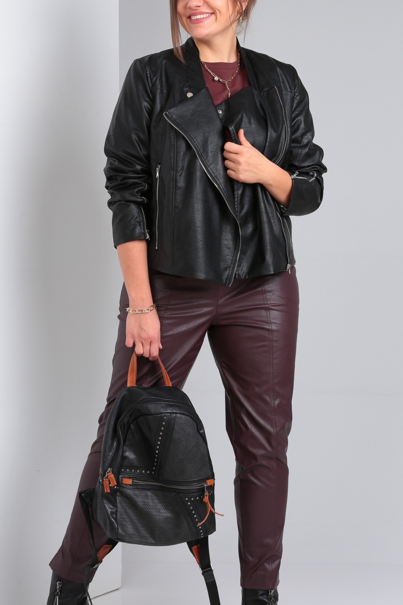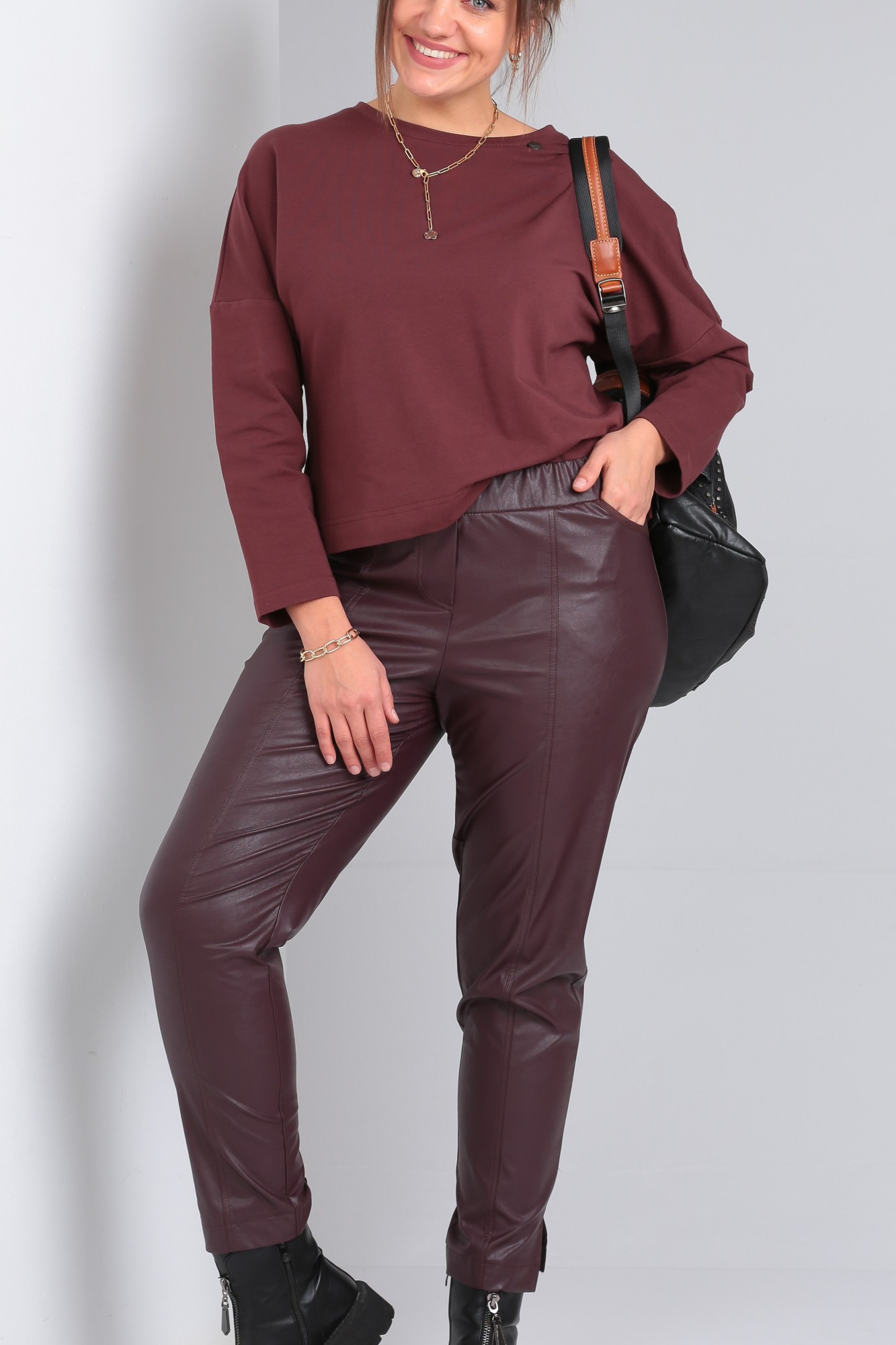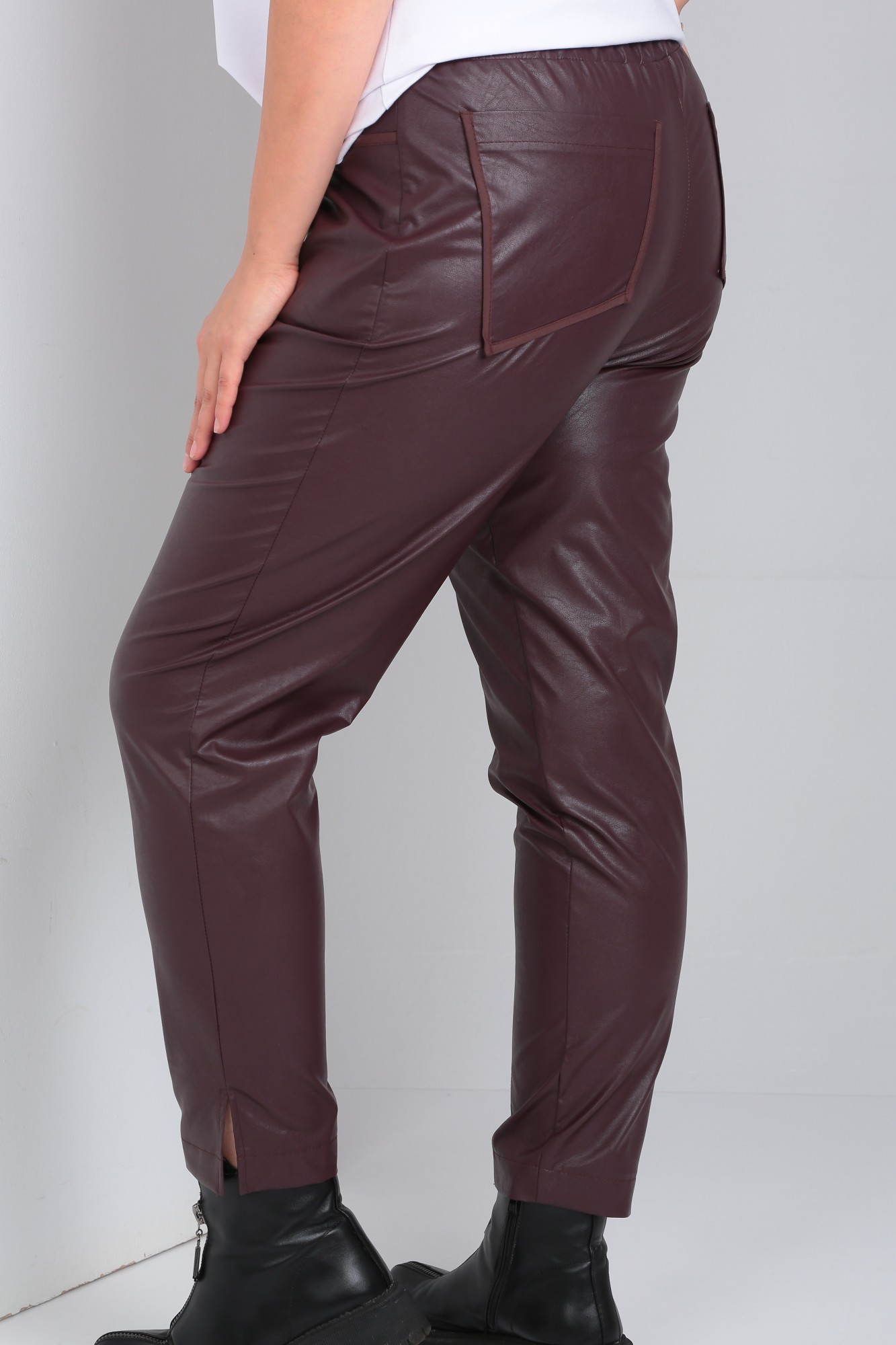 Кожаные брюки - самая актуальная модель сезона, сшиты из матовой кожи, а это всегда смотрится очень дорого, красиво, богато. Высокая посадка выполнена таким образом, что хорошо скрывает недостатки, визуально стройнит. Брюки слегка укороченные с фигурным ступенчатым низом. По передним половинкам брюк рельефы с отделочными строчками в цвет брюк. Имитация застёжки по центру переда. На задних половинках брюк накладные карманы фигурной формы с вытянутым углом. Пояс на широкой резинки в круговую. Внутренний слой - это мягкий бархатистый материал который прекрасно отводит излишнюю влагу и делает их приятными и комфортными в носке. Искусственная кожа хорошо растягивается, для более свободной посадки, как джоггеры - возьмите на размер больше, для облегания как леггинсы, то на размер меньше, в размер идеально подойдут в офис. Брюки женские из экокожи станут прекрасной основой любого образа, как на каждый день, так и на праздник и будут актуальны круглый год. Мы создаем для вас самые актуальные модели женской одежды из высококачественных материалов!
