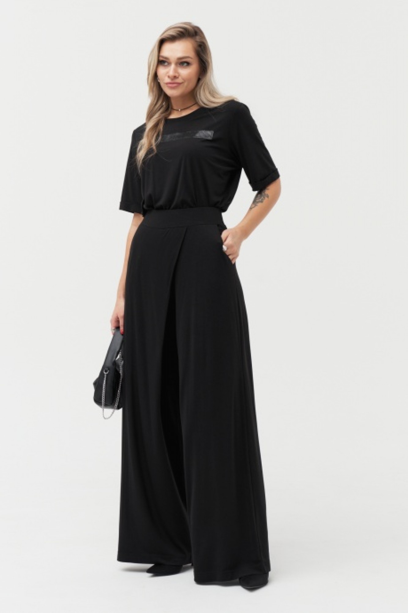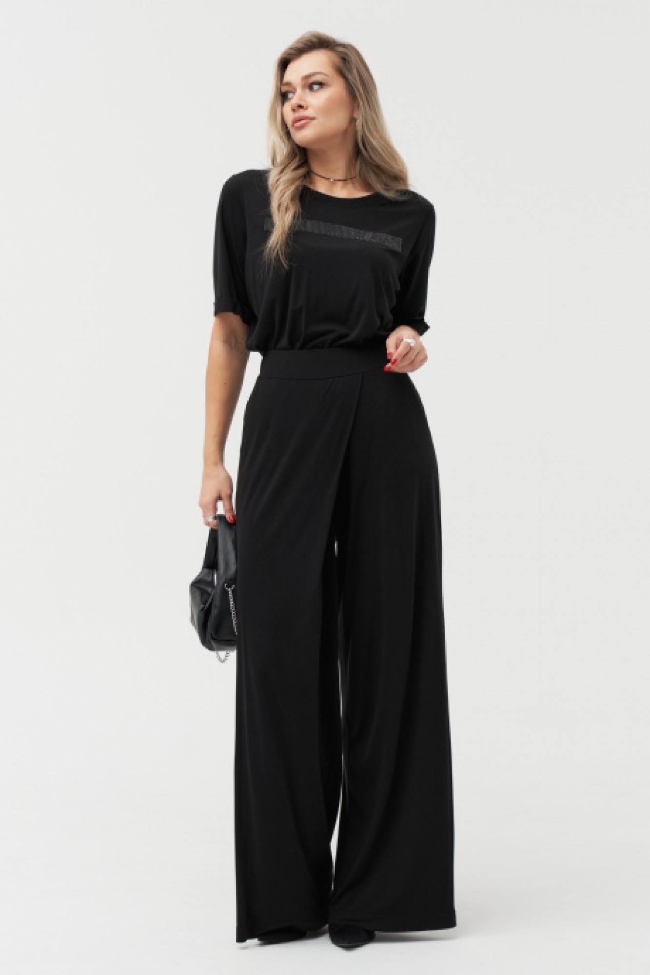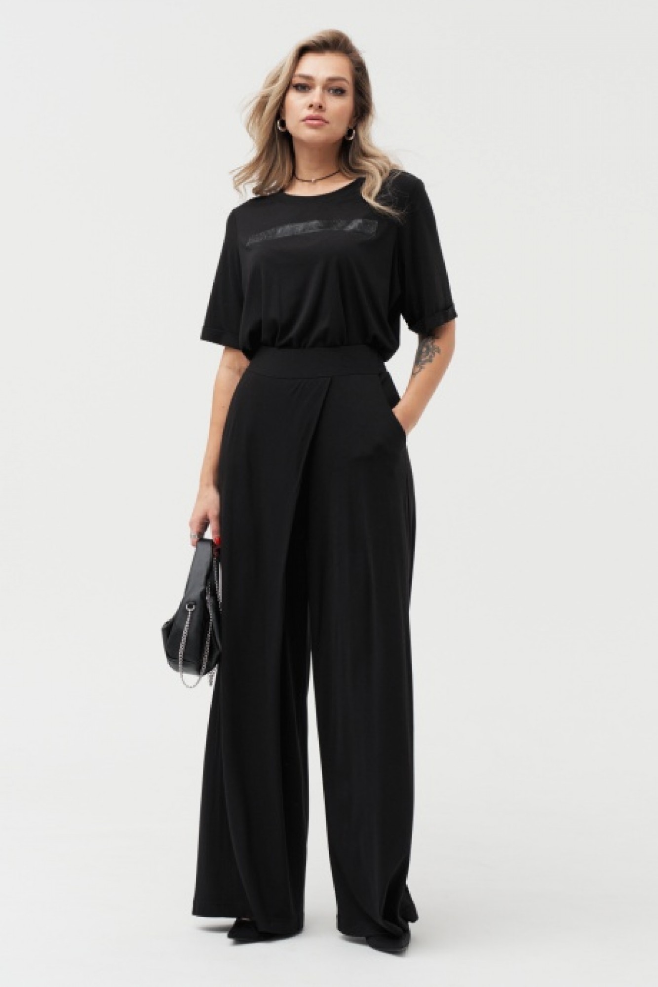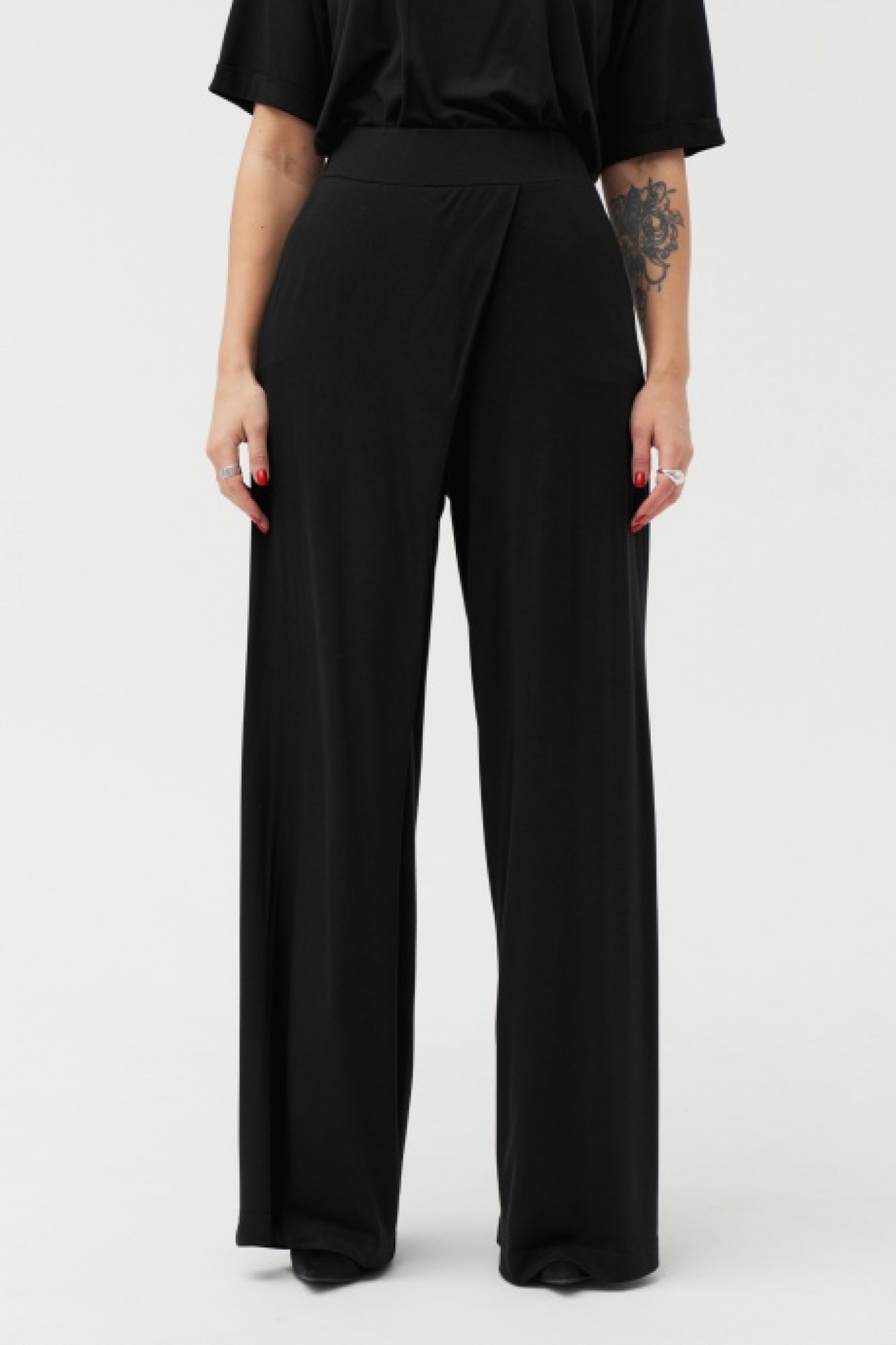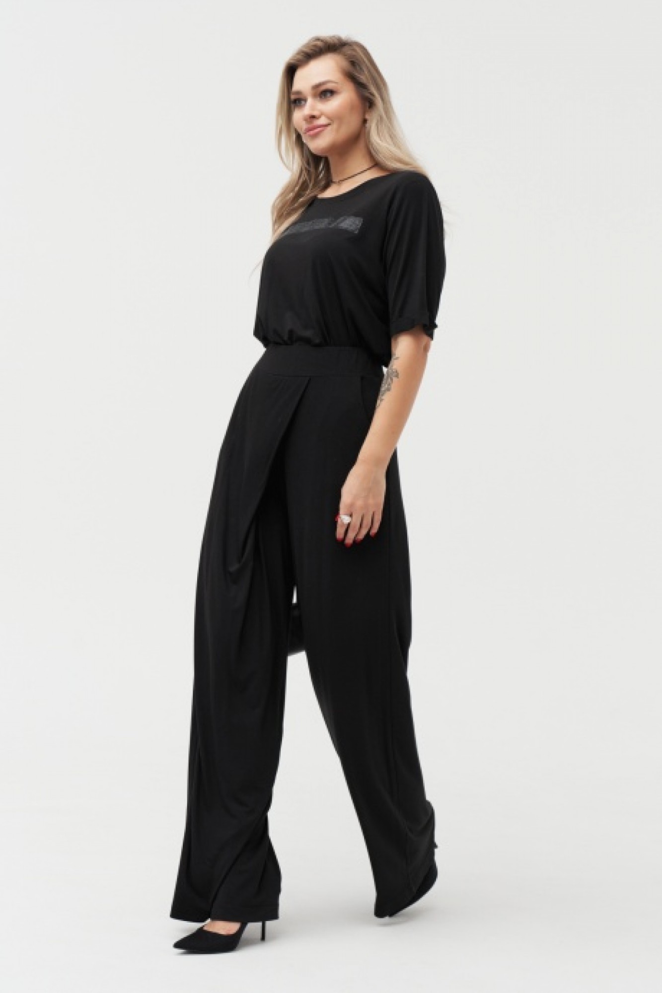 Черные брюки – это универсальная основа для создания различных образов. Особенностью этих брюк является уникальная запаховая складка, добавляющая интересного шарма и ловко скрывающая возможные недостатки фигуры. Сочетайте их с любимыми блузами или свитерами, чтобы подчеркнуть ваш индивидуальный стиль. В этих брюках вы будете выглядеть элегантно и ощущать абсолютный комфорт.