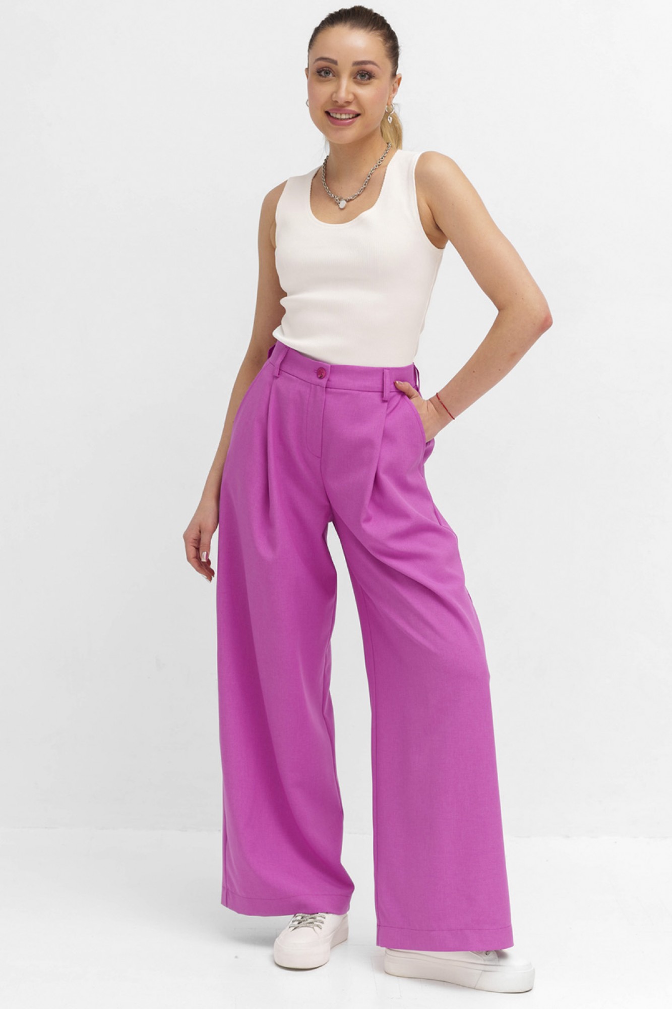 Стильные, модные, невероятно элегантные женские брюки-палаццо из льна-вишера - хит для теплого сезона. Высокая удобная посадка. Такие женские брюки идеально впишутся в различные образы на каждый день. Сзади на поясе резинка, что позволит брюкам сесть на любую фигуру.
