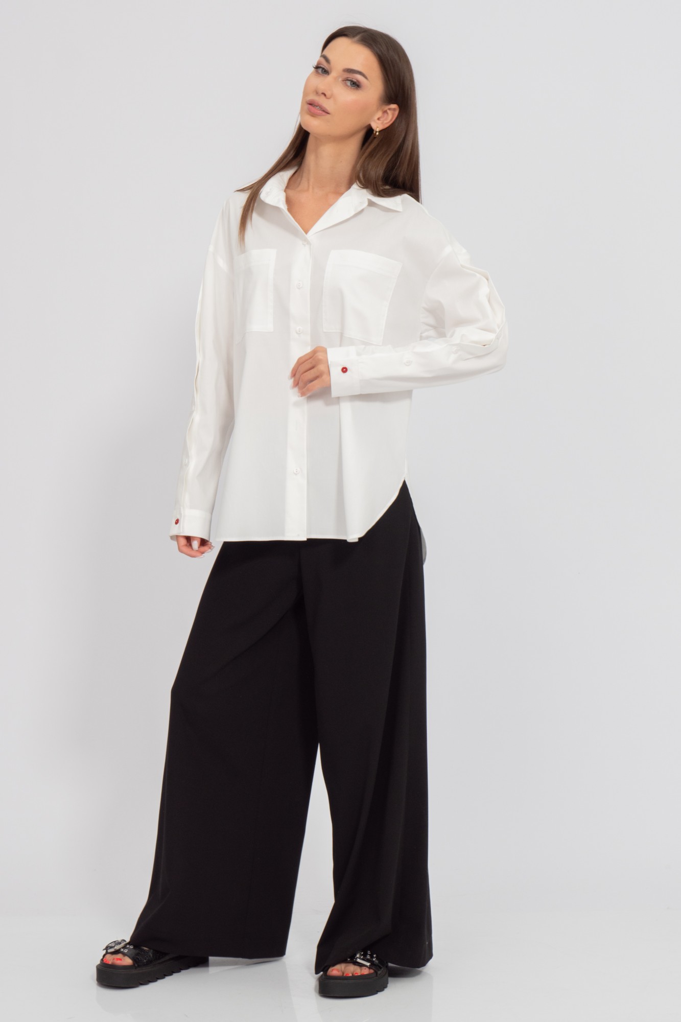 Брюки палаццо средней посадки — идеальный выбор для создания стильного и элегантного образа. Они изготовлены из качественной костюмной ткани, обеспечивающей комфорт и долговечность. Отсутствие карманов позволяет экспериментировать с аксессуарами и создавать разнообразные образы.
