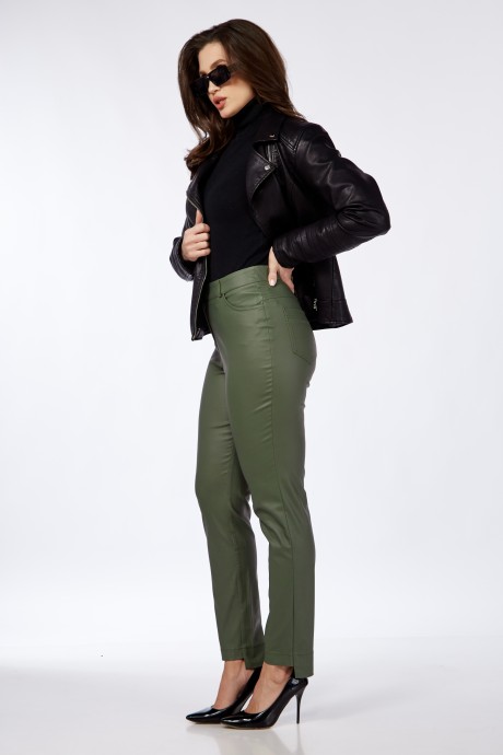 Брюки женские прилегающие, перед брюк короче спинки. Застежка молния и одна пуговица. Задние части с кокетками и накладными карманами. Длина шагового шва 78 см. Бережная стирка при 30 градусах!