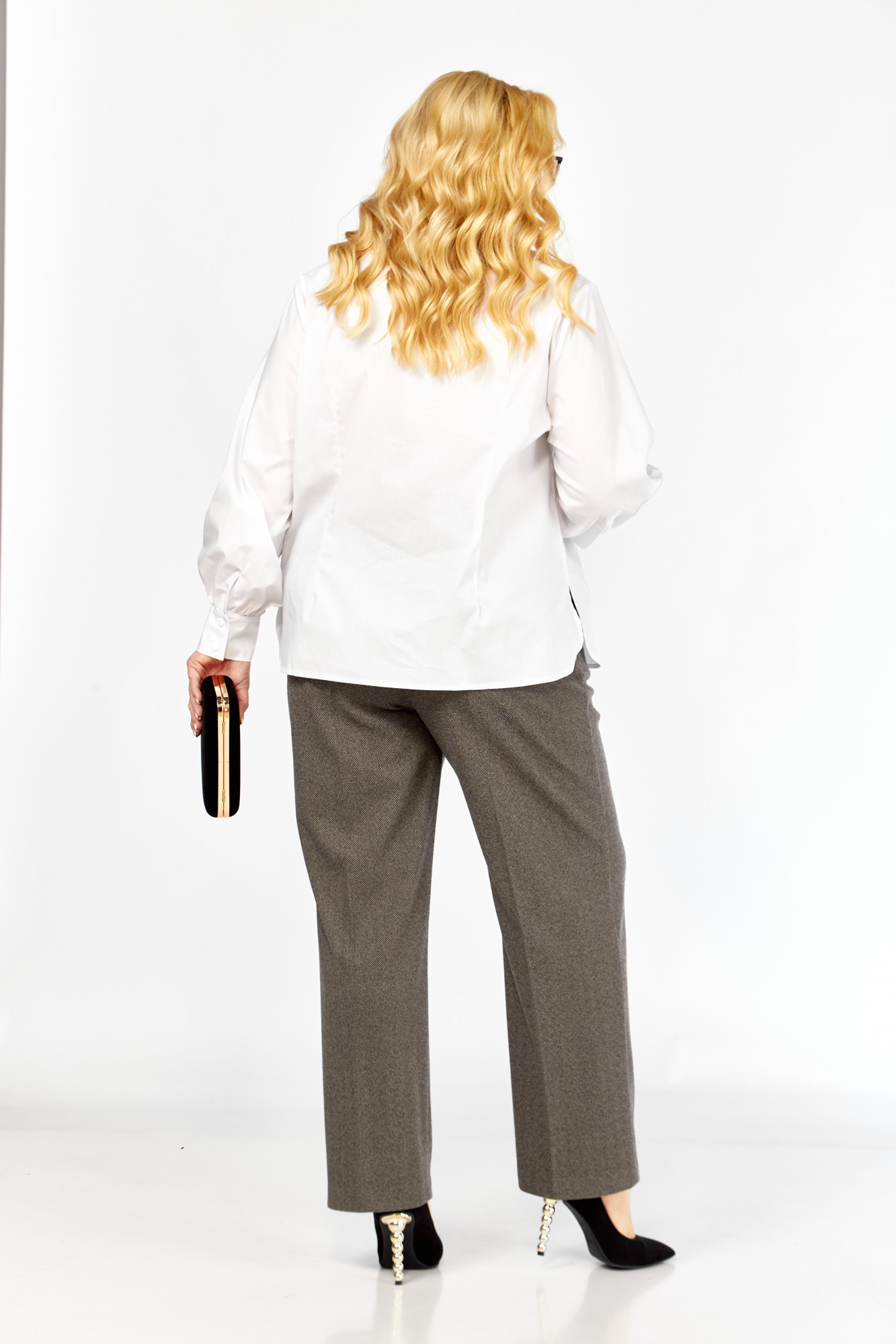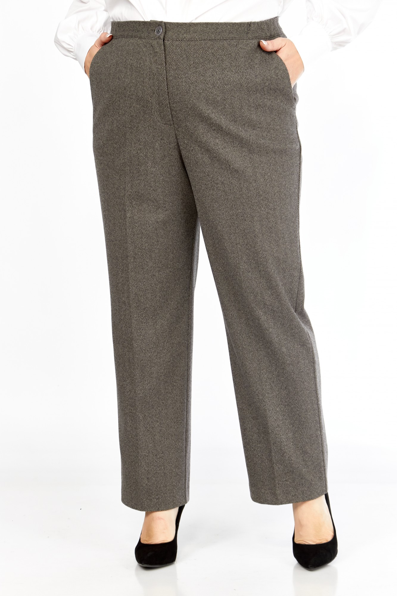 Брюки прямого кроя, спереди обработаны боковые скошенные функциональные карманы. Пояс притачной, частично на резинке, что обеспечивает комфортную посадку. Застежка спереди брюк на молнию и петлю-пуговицу. Ткань обеспечит уют в осеннюю погоду, сохраняя тепло.