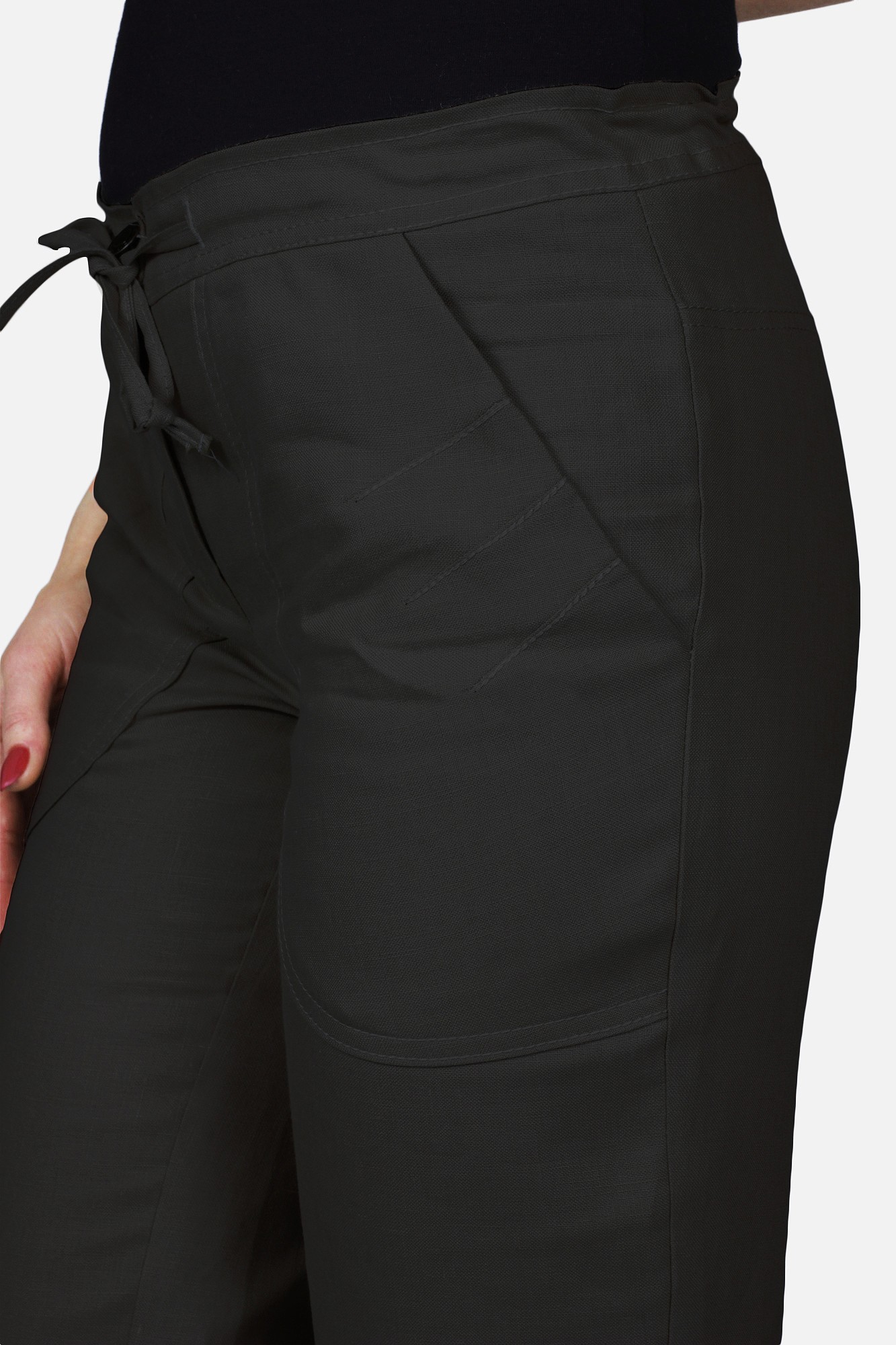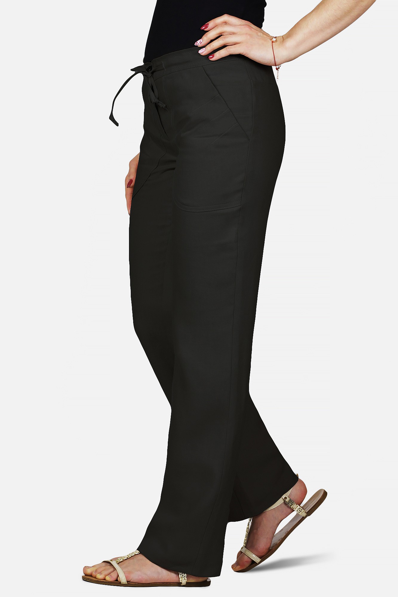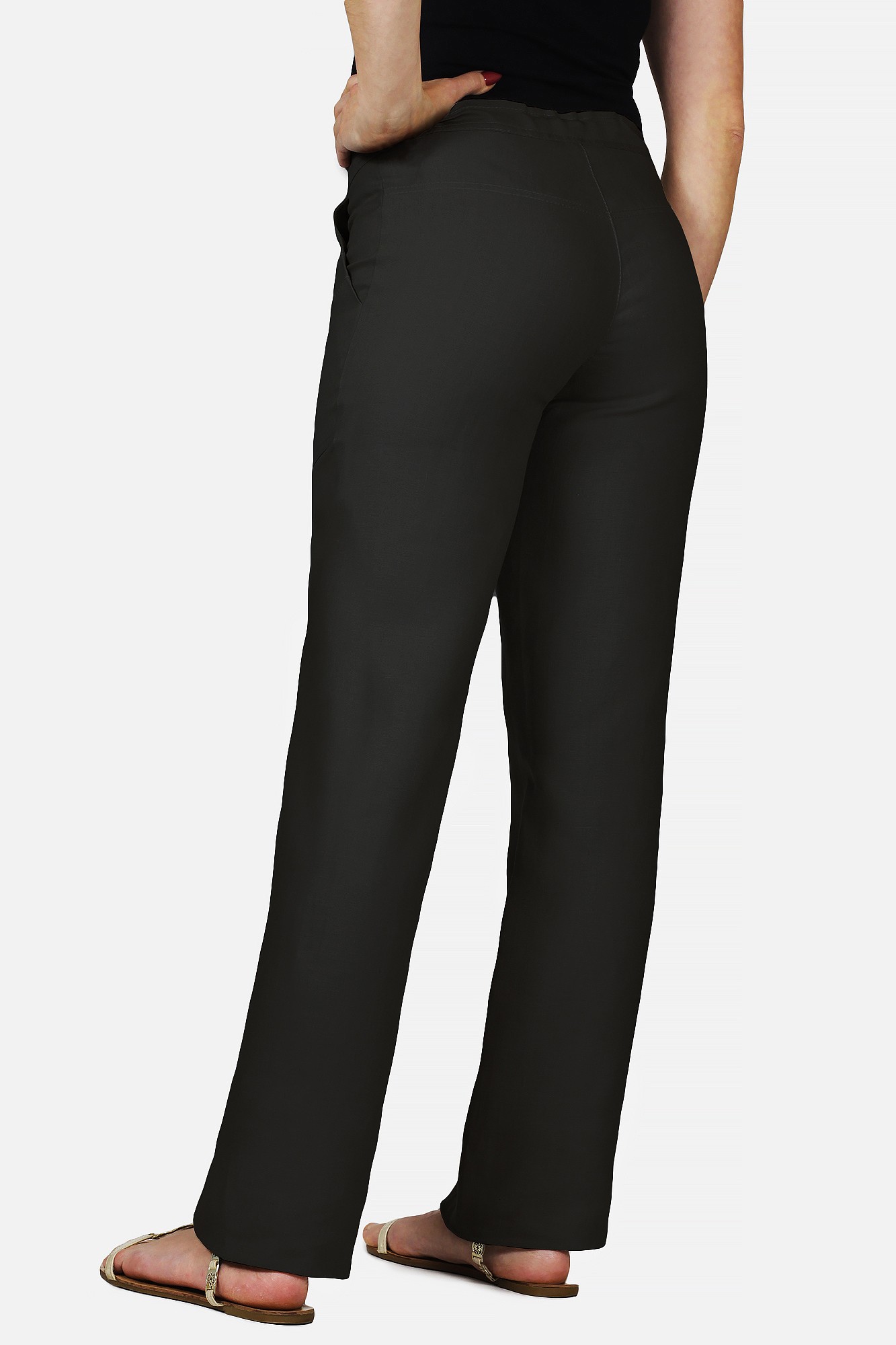 Брюки изготовлены из качественного материала – вискозы в сочетании со льном. Красивый натуральный цвет льна выглядит очень стильно. Сочетание вискозы и льна идеально подходит для весенне-летнего периода, льняное волокно становится более струящимся, мягким и меньше мнется благодаря содержанию вискозы.