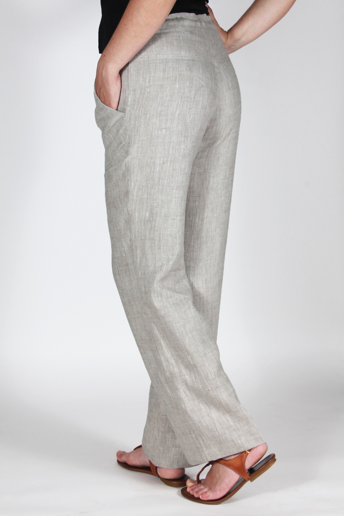 Брюки изготовлены из качественного материала – вискозы в сочетании со льном. Красивый натуральный цвет льна выглядит очень стильно. Сочетание вискозы и льна идеально подходит для весенне-летнего периода, льняное волокно становится более струящимся, мягким и меньше мнется благодаря содержанию вискозы.