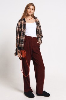 Брюки со складками по талии. Прямой, расширяющийся книзу силуэт. Карманы в боковом шве.