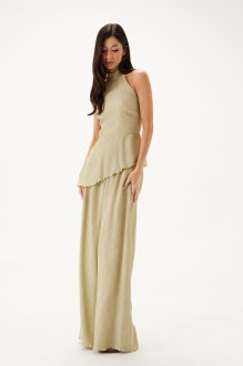 Широкие брюки с асимметричной застежкой-запахом по переду. Карманы в боковом шве. Застежка на пуговицы.