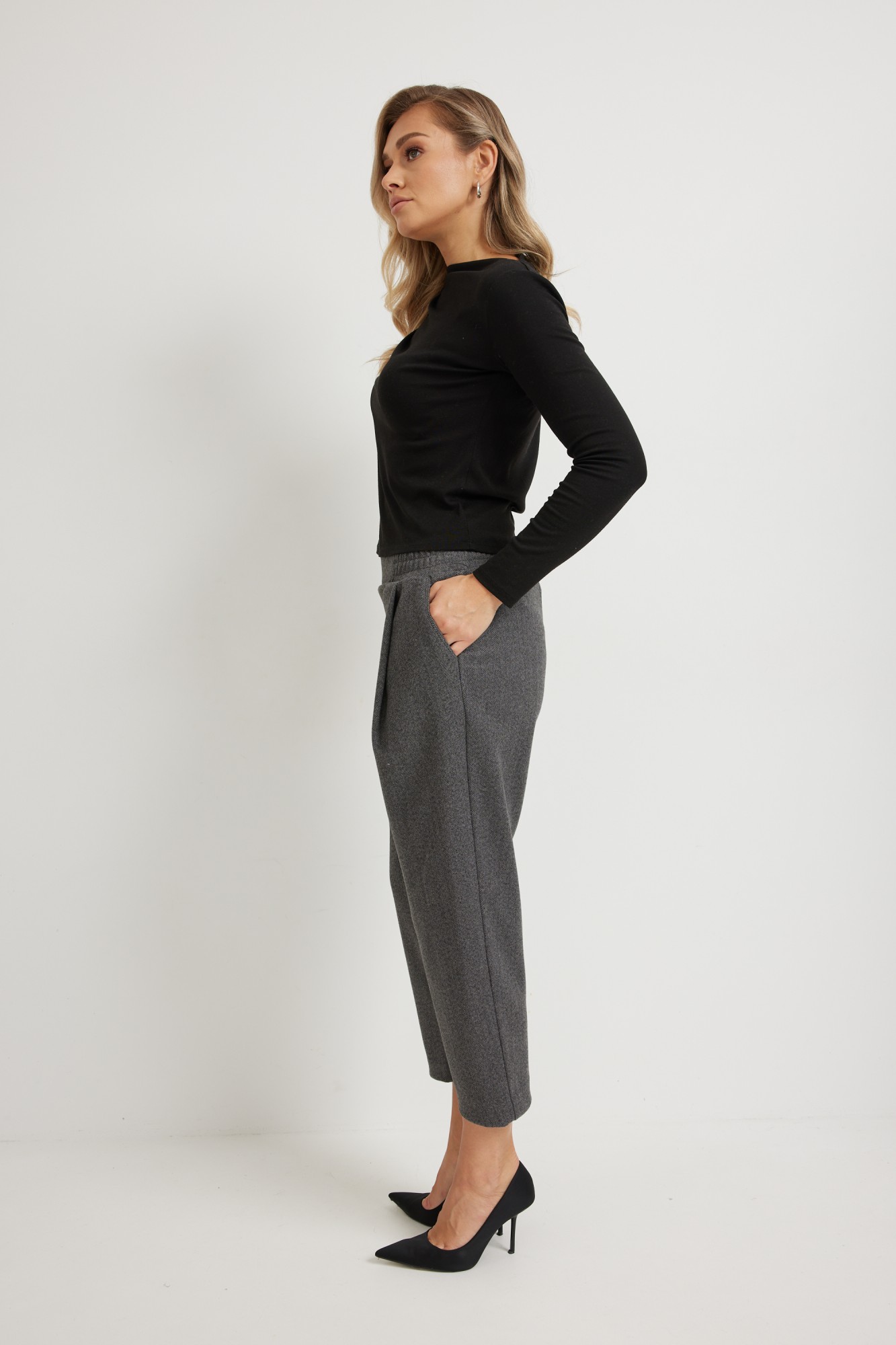 Удобные стильные Брюки-бананы 7/8 осенне- зимнего ассортимента от белорусского производителя. Ткань мягкая и очень приятная к телу. Модель со средней посадкой, защипами спереди, создающими лёгкую складку, боковыми карманами. Пояс на резинке. Хорошо сочетаются в комплекте с Блузоном М 1273 серая "ёлочка". Для выбора нужного размера воспользуйтесь размерной сеткой (таблица).