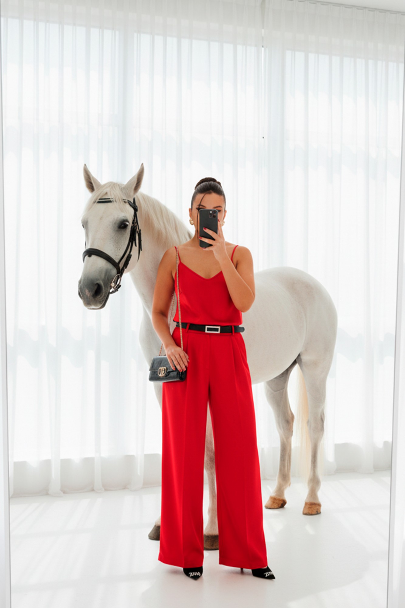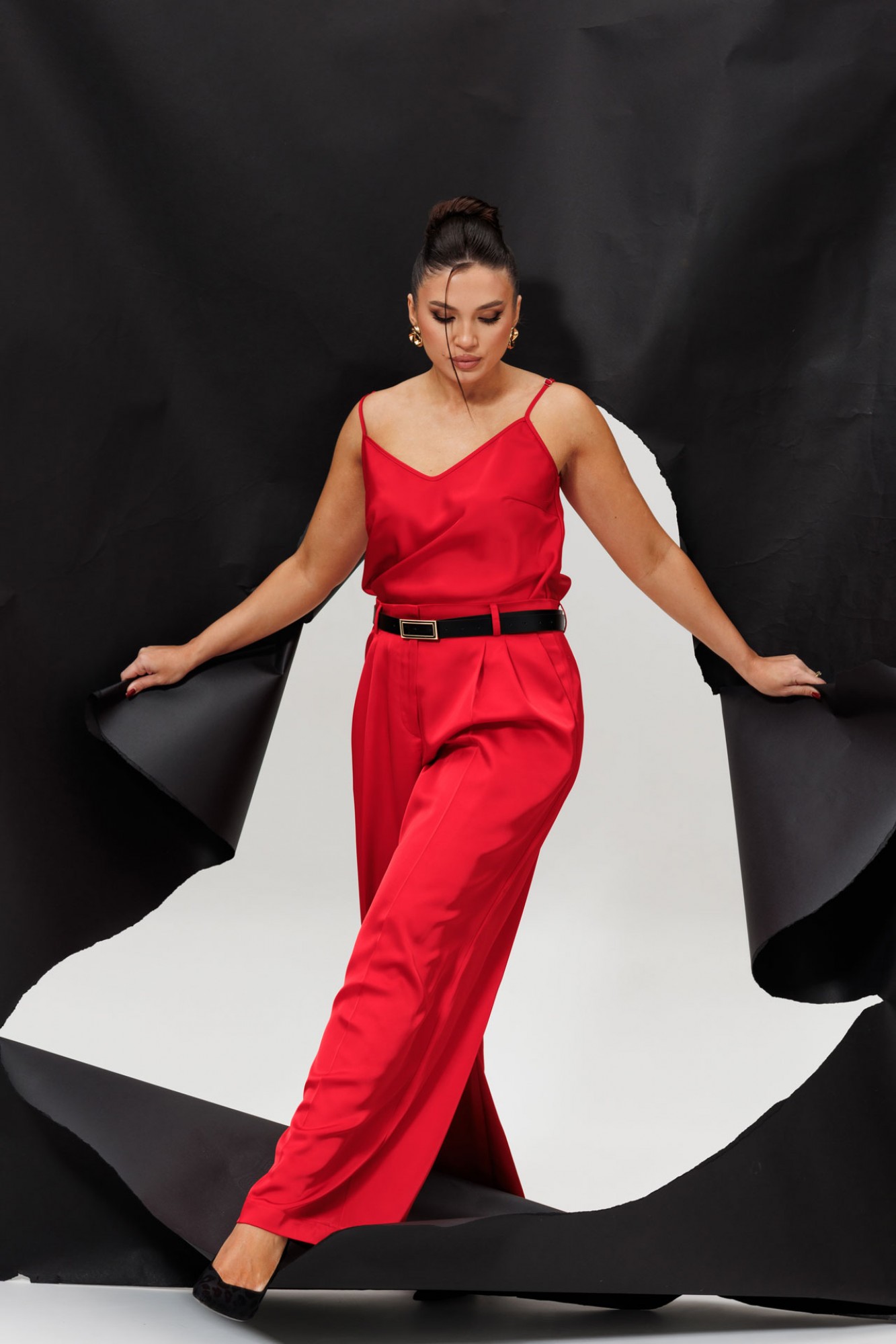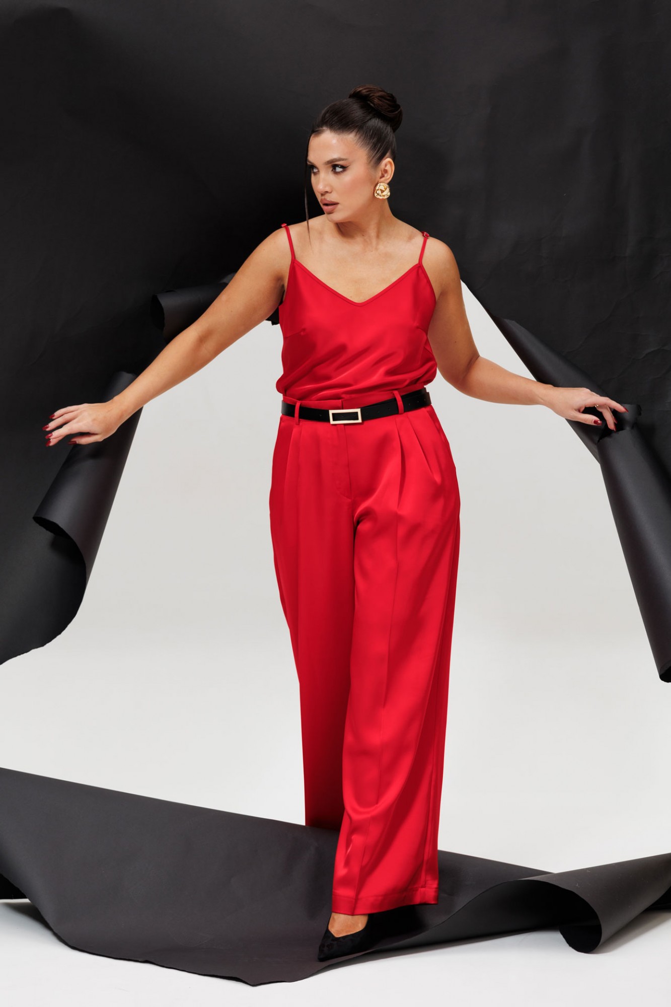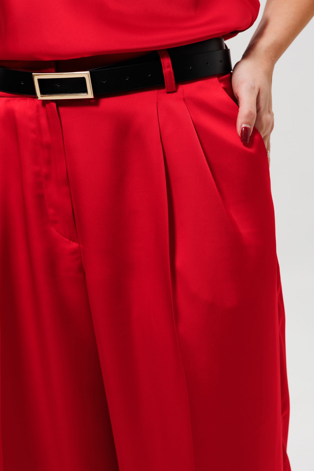 Брюки выполнены из атласной ткани, расширены к низу. На передних половинках брюк обработаны 2 складки и боковые карманы. На задних – талиевые вытачки. Застёжка на молнию и 2 потайных крючка. Эти атласные брюки (Арт. 1282) — Must Have для создания безупречного вечернего или праздничного образа. Модель представлена в двух богатых оттенках: насыщенном красном и глубоком шоколадном. Брюки выполнены из атласной ткани, которая мягко струится, подчеркивая изящество каждого движения. Универсальный крой позволяет сочетать их как с атласными топами (арт.1164) и блузами (например арт.1280) для выхода в свет, так и с кашемировыми джемперами для создания смарт-кэжуал образа. Атласные брюки с завышенной талией обеспечивают комфортную посадку и визуально вытягивают силуэт. Размеры 46-52.