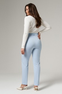 Брюки женские из костюмной ткани для повседневной носки. Брюки заужаются к низу. В пояс брюк вставлена резинка. По переду в боковых швах имеются карманы.
