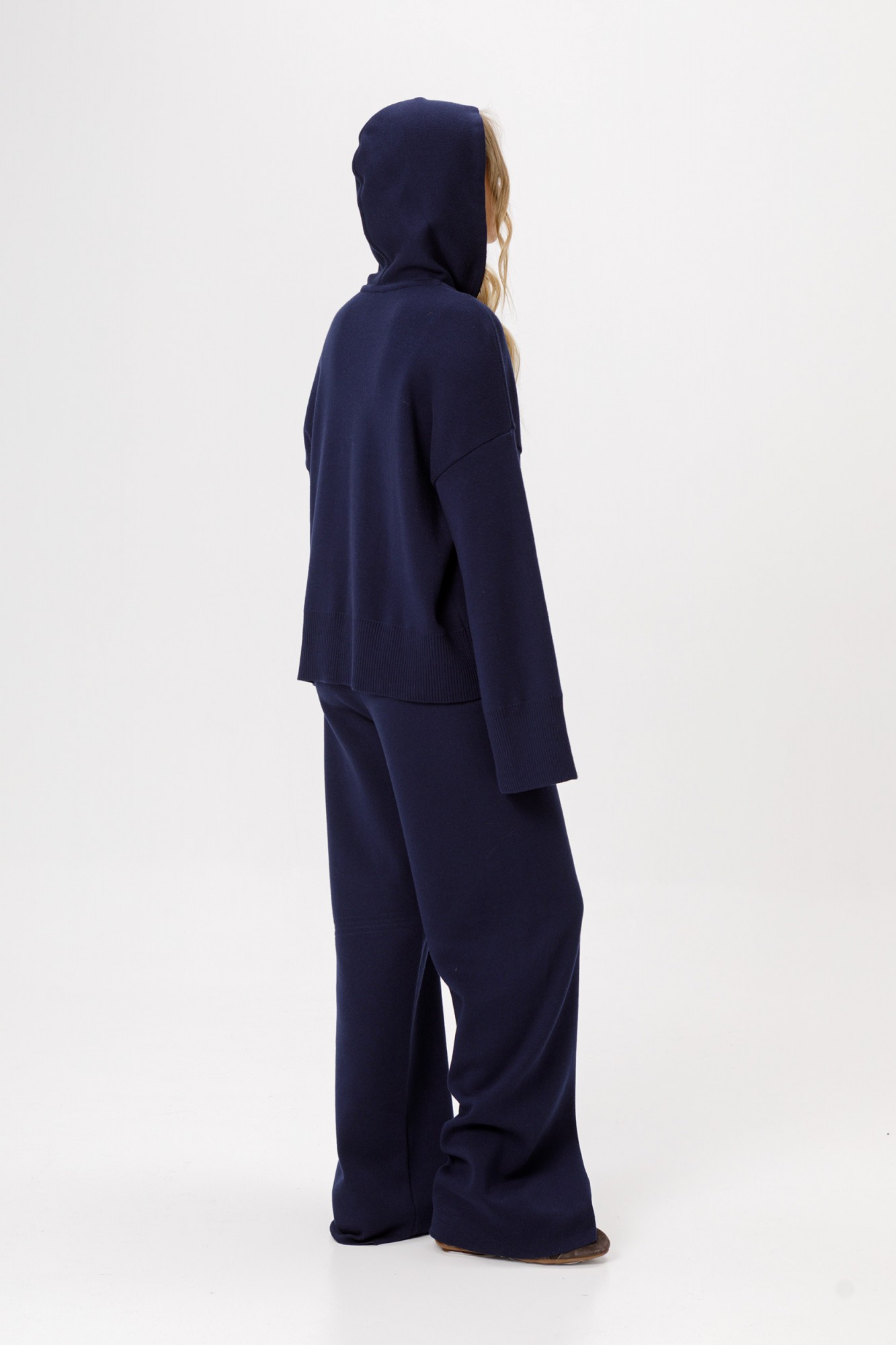 Вязаные прямые широкие брюки из хлопковой пряжи. Детали: высокая посадка, пояс с резинкой, без карманов.