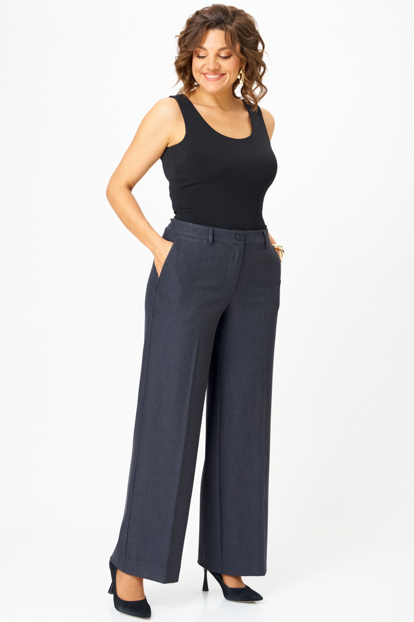 Брюки БелЭльСтиль 601 серо-синяя клетка