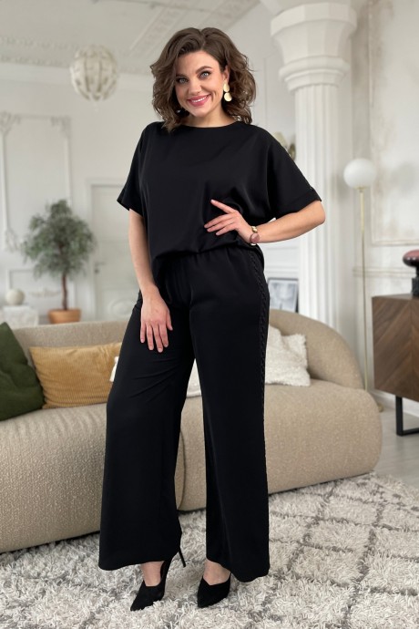 Брюки женские из текстильной ткани ,прямого силуэта. По боковым швам вставлено кружево. Пояс брюк на резинке.