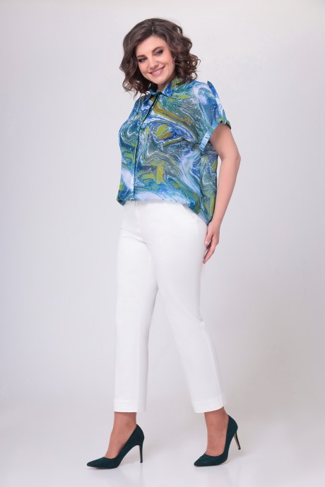 Брюки женские прямого силуэта. Выполнены из турецкого денима. Брюки - с притачным поясом и резинкой по спинке. По переду обработаны боковые карманы. Застёжка - на тесьму-молнию и пробивную пуговицу. По задним половинкам брюк расположены накладные карманы. Длину брюк можно регулировать подворотом. Длина брюк по боковому шву 95см (+/-1см)