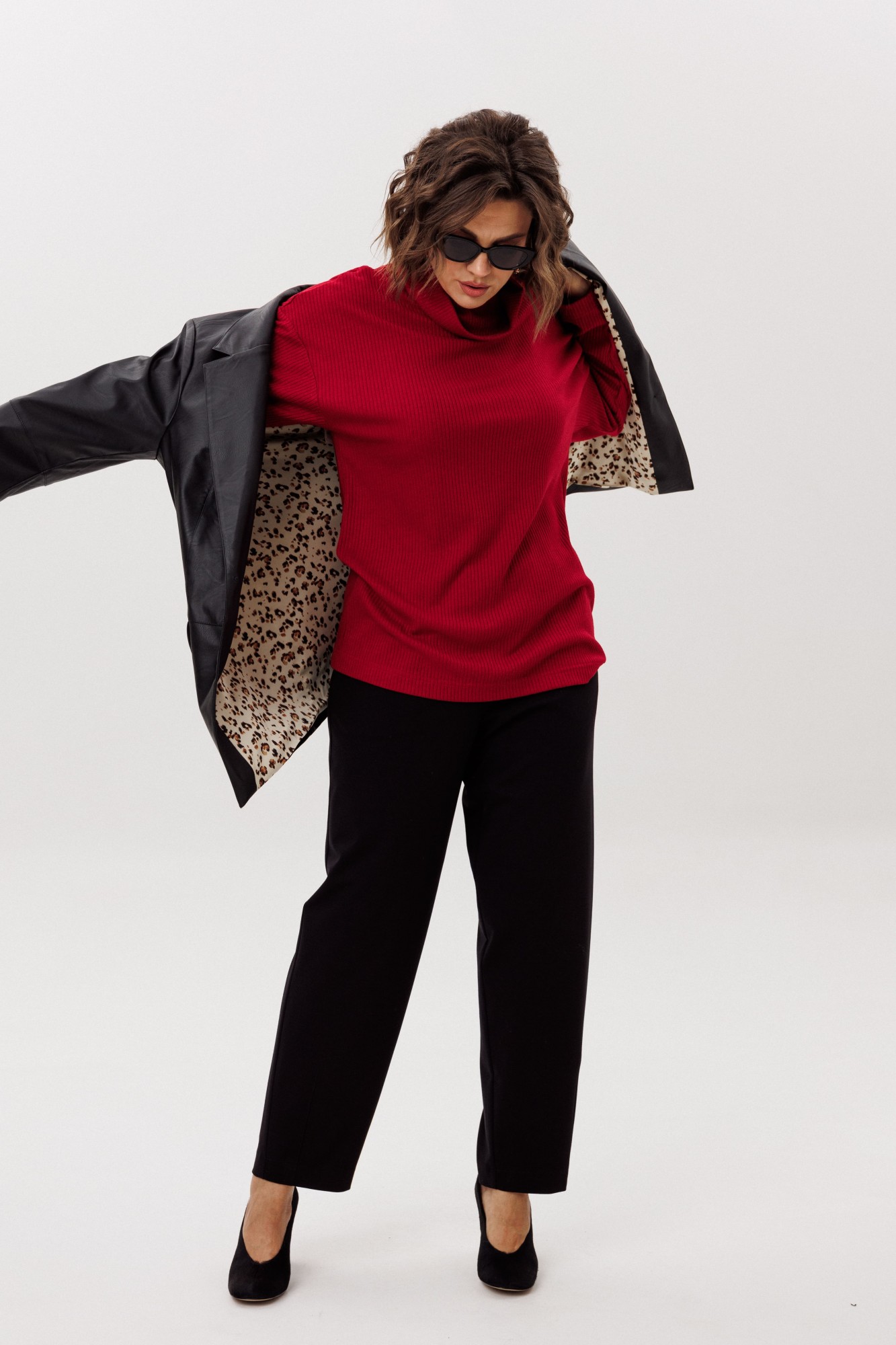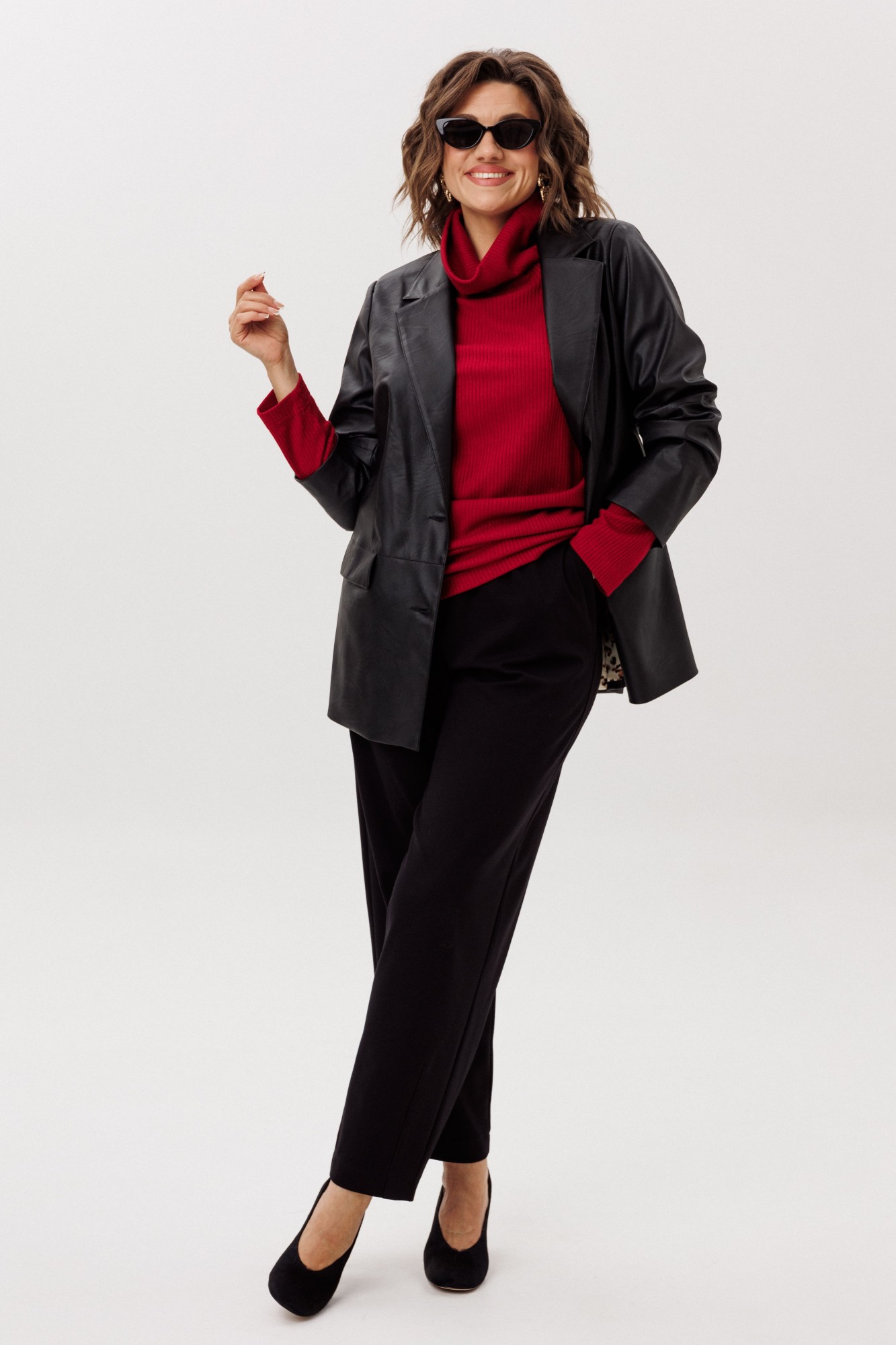 На модели трикотажные брюки 1660.1, брюки из эко кожи 1400.2, жакет 1470 и жилет 1502.1.