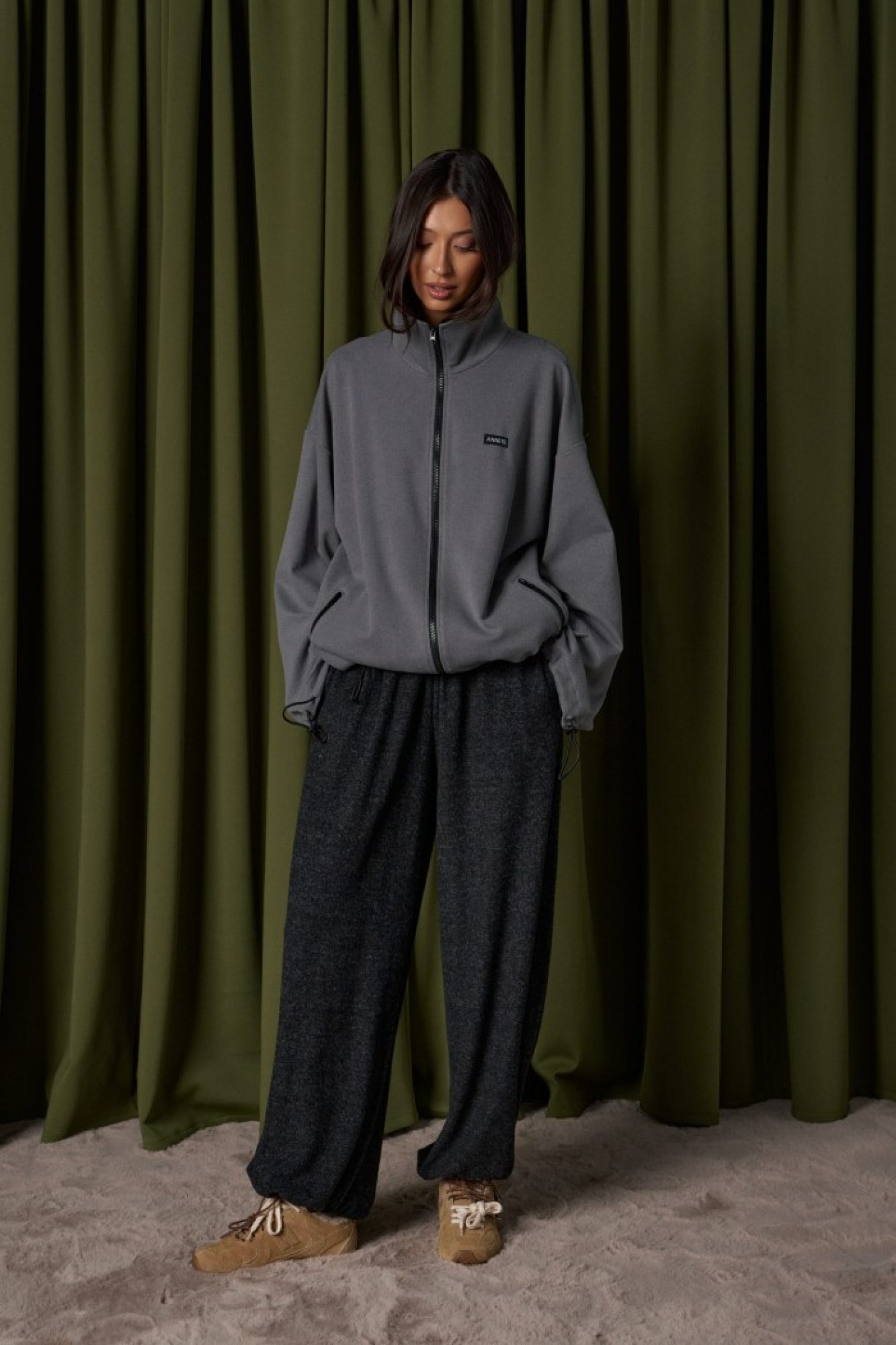 Джемпер прямого силуэта, выполнен из трикотажного полотна серого цвета. Характеристики: горловина круглая, воротник стойка черного цвета, рукав втачной, спущен, по низу рукава кулиса с втянутым шнуром-резинкой, регулируемой фиксаторами, прорезные карманы на молниях, спереди брендированная нашивка. Застежка центральная на молнию. По низу изделия кулиса с втянутым шнуром-резинкой, регулируемой фиксаторами.