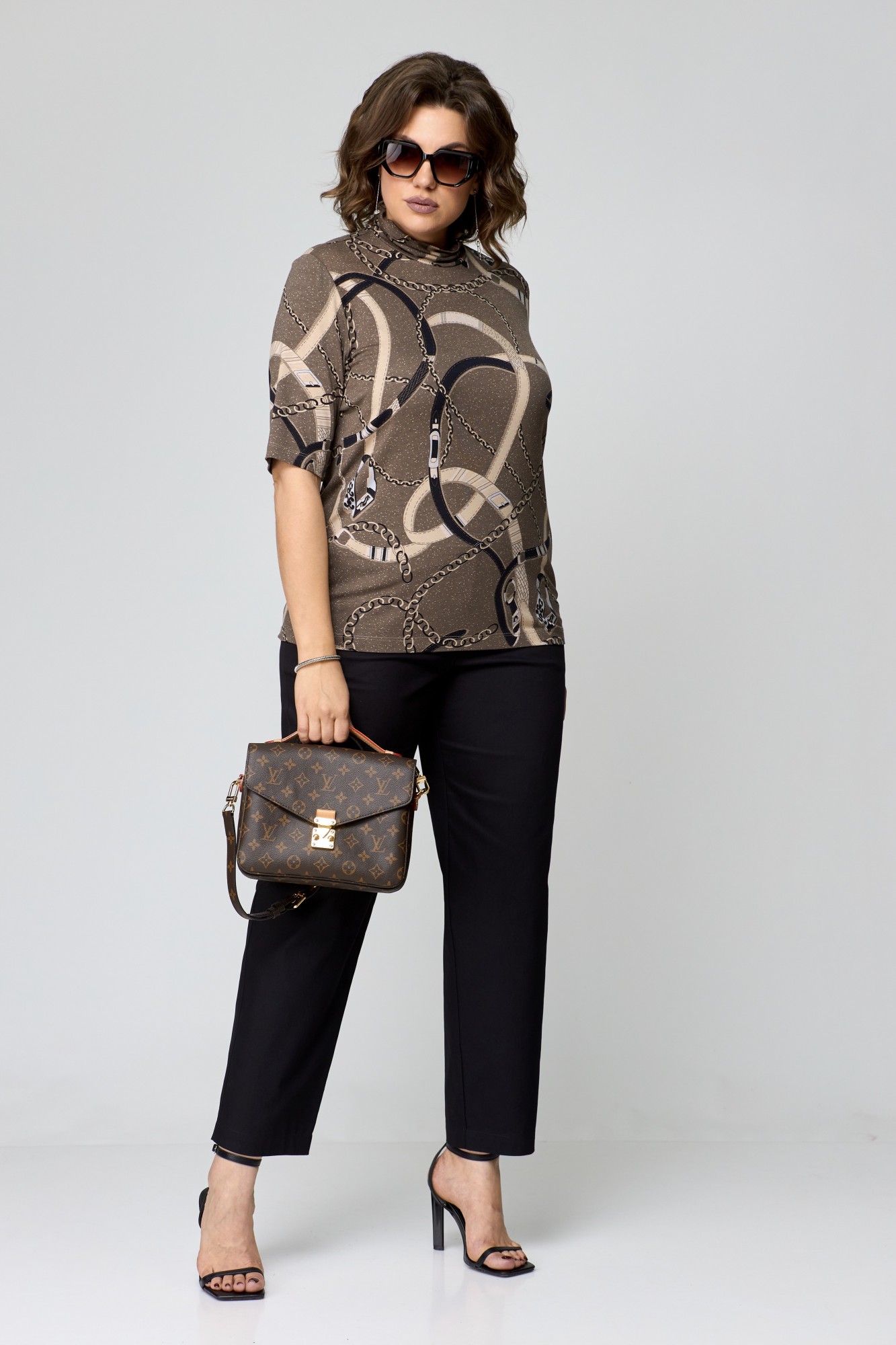 Джемпер (кофта) Bliss 8092 коричневый, принт цепи с ID товара 395637